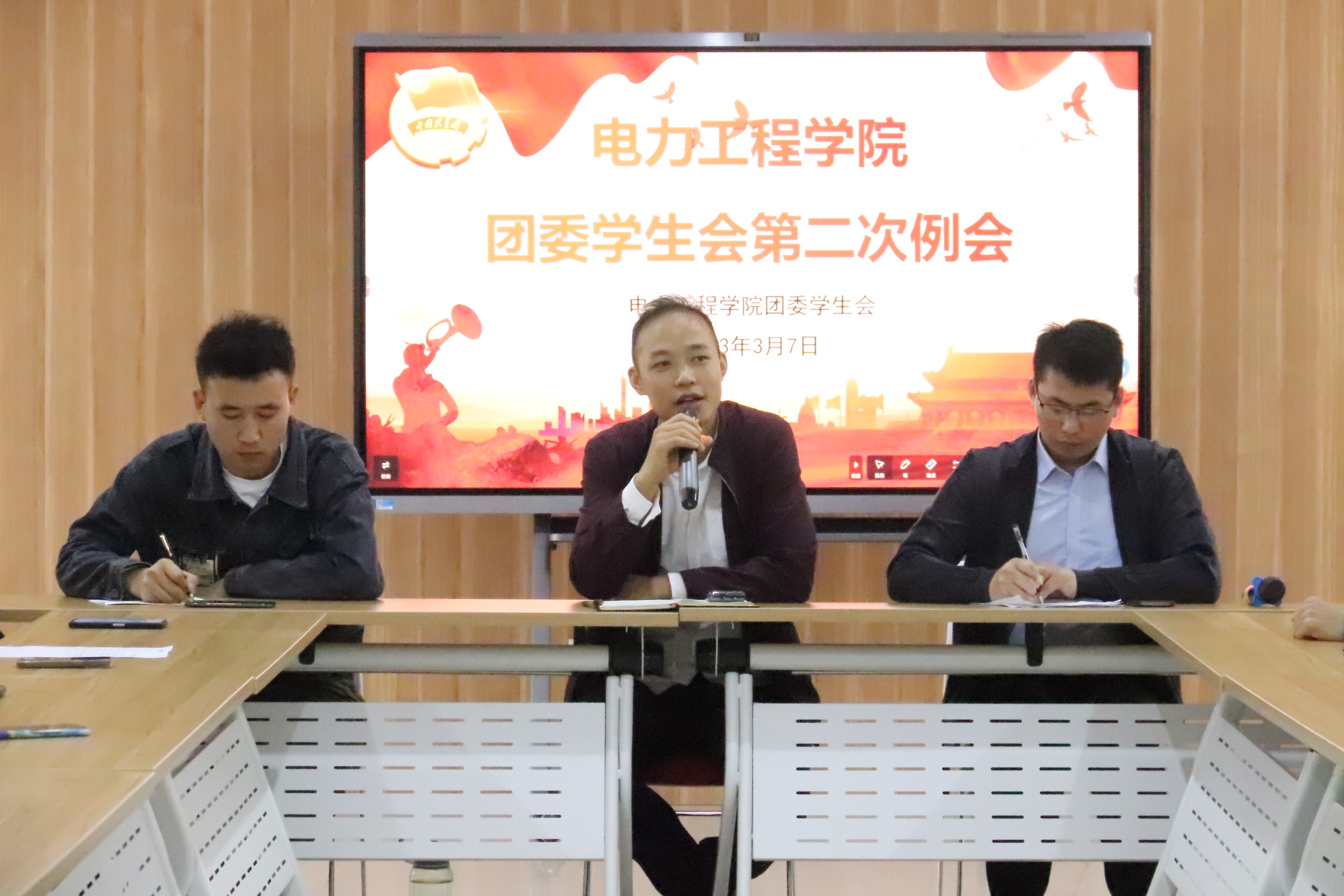 3月7日,电力工程学院团委学生会在里建校区和园一站式多功能厅召开团委学生会第二次全体例会。电力工程学院党总支书记罗宇强、团委书记兰海貌、团委副书记高世举出席会议,全体团学干部参与本次例会。