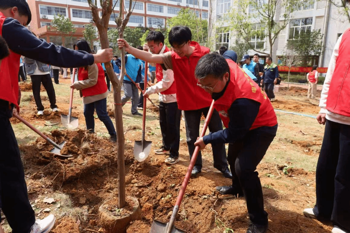 经过共同努力,4棵新栽树苗整齐挺立,为校园增添盎然绿意。活动最后,师生为树苗挂上心愿卡,写下期许与环保承诺,约定长期开展树苗养护工作,让植绿与护绿形成长效联动,确保新苗茁壮成长。