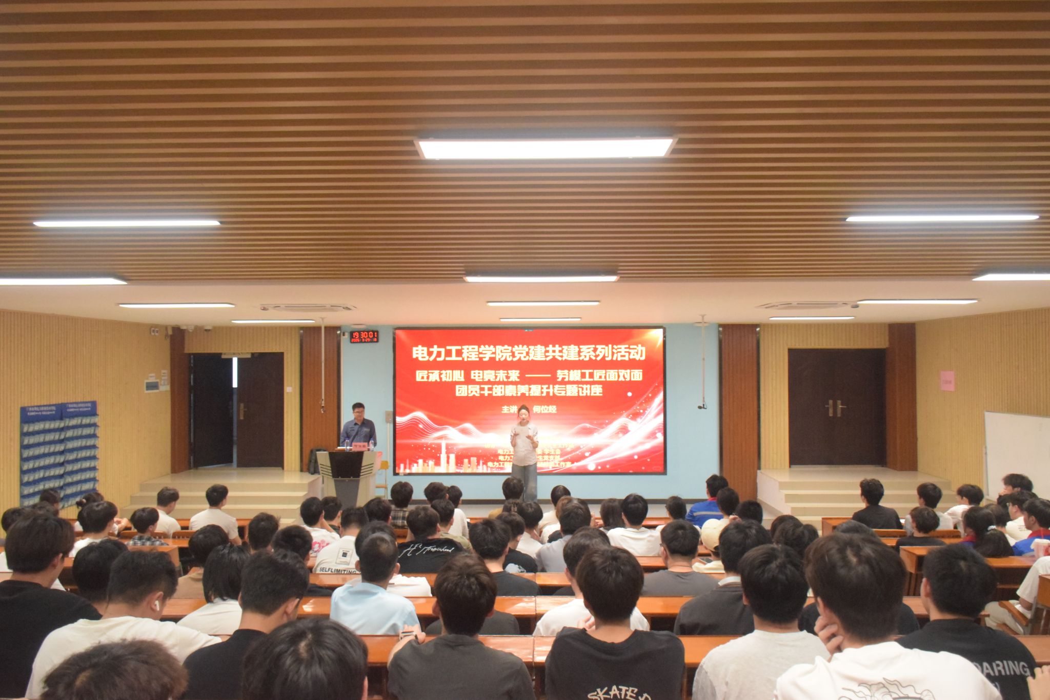 [本网讯]为大力弘扬劳模精神、工匠精神,引导青年学子树立正确的职业理想,3月29日晚,电力工程学院在里建校区教学楼成功开展党建共建系列活动——“匠承初心,电亮未来”劳模工匠面对面专题活动。本次讲座特邀李炎、何位经、李宝锋、廖海铭四位先进典型担任主讲嘉宾,他们曾获“全国五一劳动奖章”“全国技术能手”“广西工匠”“广西劳动模范”“南方电网劳模”等多项荣誉。电力工程学院党总支书记罗宇强出席本次活动,活动由电力工程学院专职组织员赵丹、团委负责人梁克冬、团委副书记徐鑫阳、“蕴电”辅导员工作室主持人丁丽丽主持,2024级、2025级学生到场聆听。