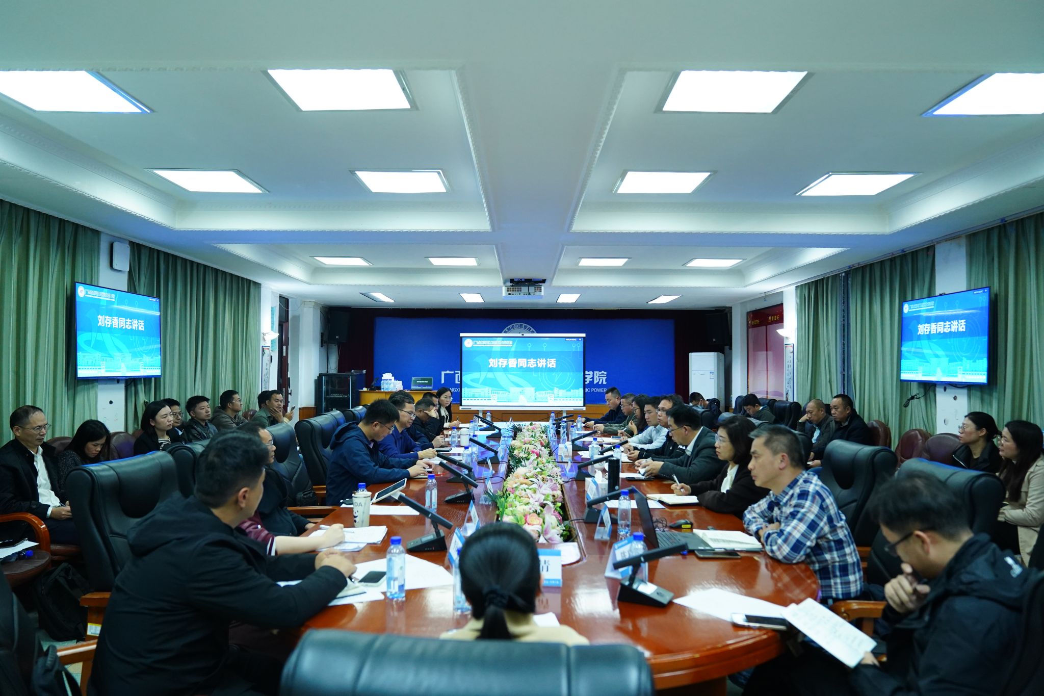 刘存香在讲话中指出,希望博士及二级学院能够结合学校发展实际,紧贴区域与行业特色,在人工智能、广西跨境合作等领域寻找新的科研突破点,努力打造科研特色,力争在广西科技项目上取得新进展。要对比分析我校在科研项目发展、技术研发及转化平台建设方面的成绩与不足,指导高水平技术研发与转化平台的申报工作;要充分整合多方资源,借助内外部力量落实科研发展举措,为各类科研项目申报做好充分准备;要落实学校对科研工作的支持和激励措施,完善科研奖励机制等,通过保障科研资金、组建博士团队等措施,推动科研工作整体上台阶。