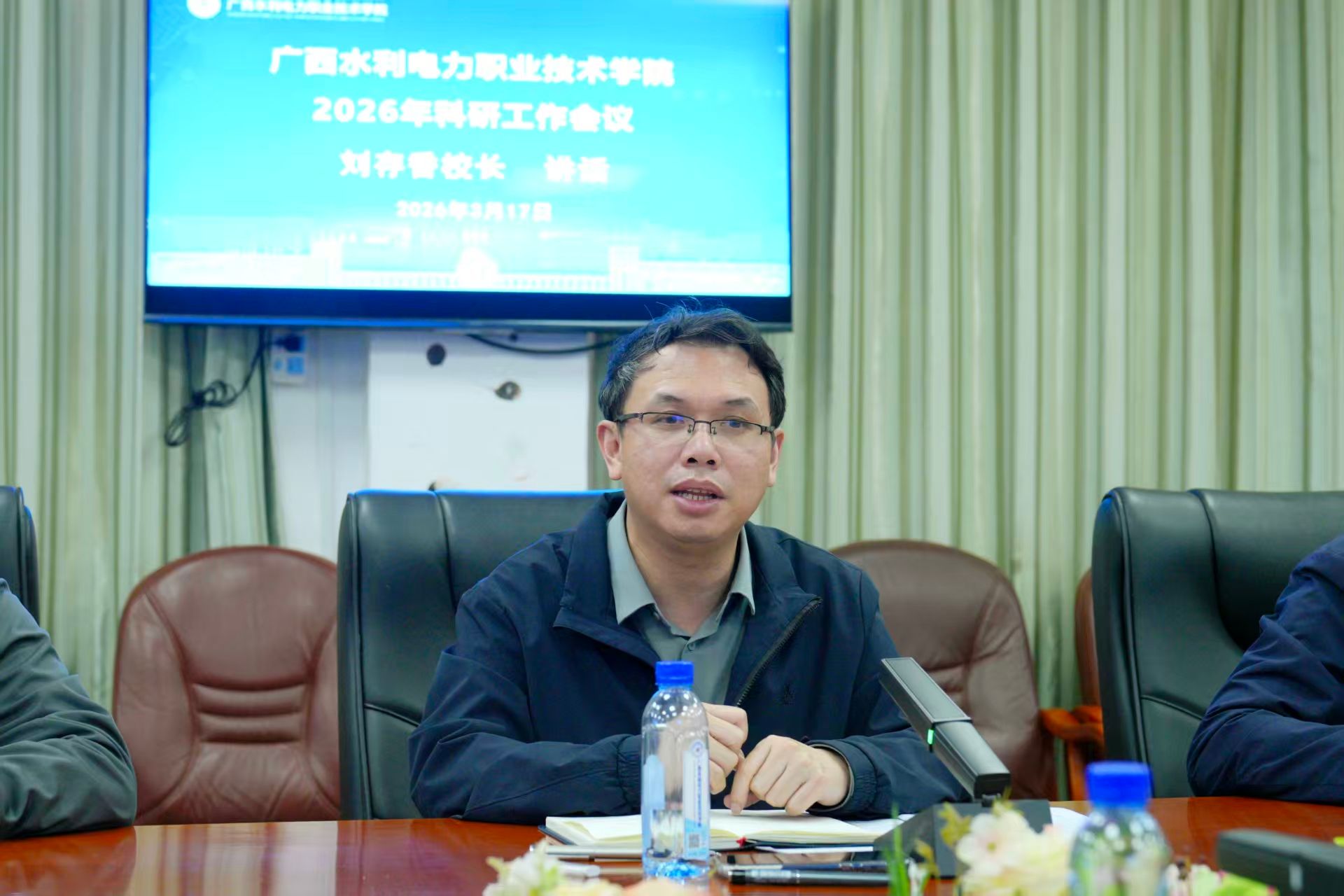 [本网讯]3月17日下午,学校在长堽校区召开2026年科研工作会议,学校校长刘存香出席会议并讲话,副校长周涛主持会议。