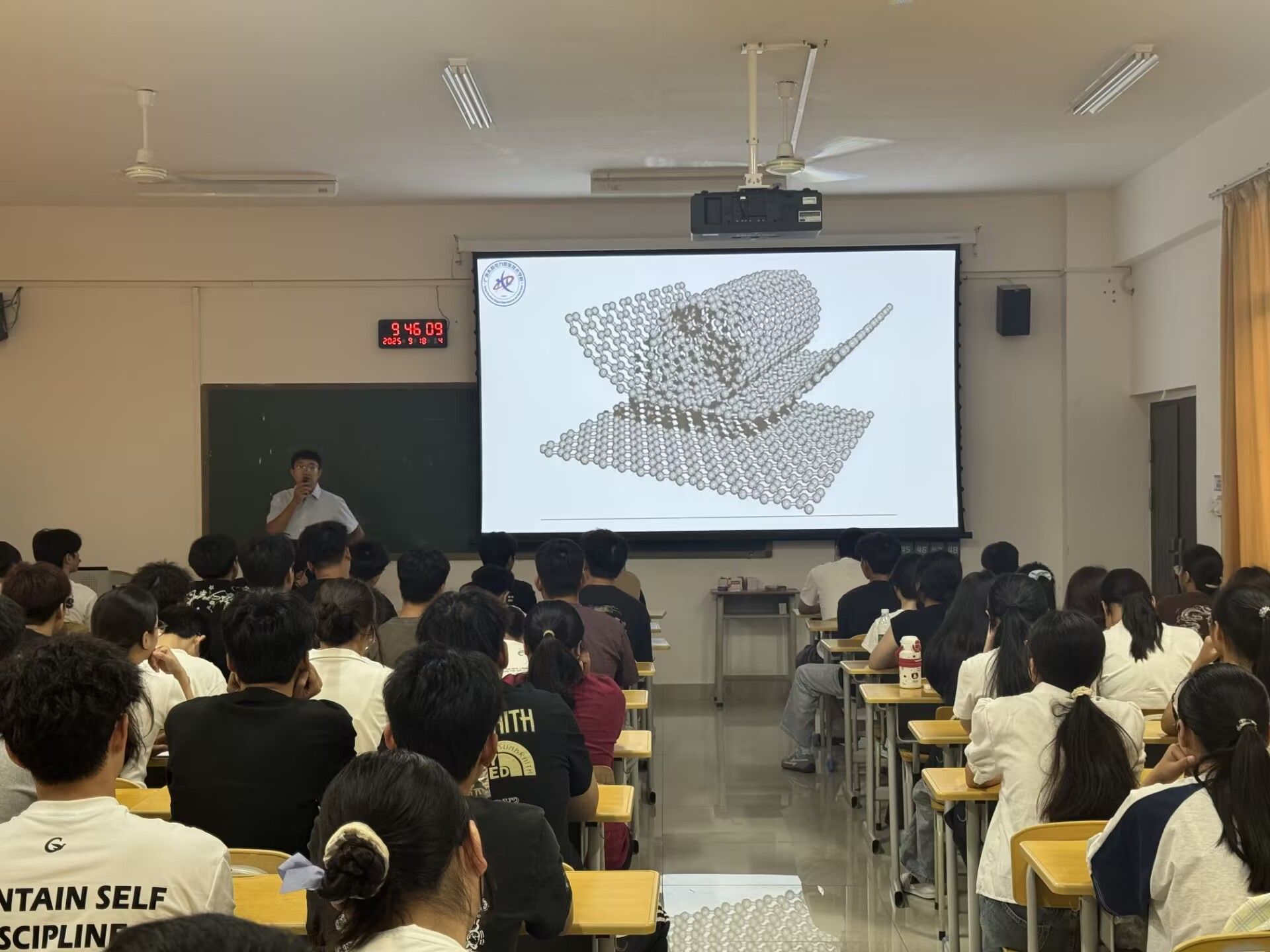 讲座从“什么是纳米”、“什么是纳米材料”引入,系统介绍了纳米材料在污水处理、污染物吸附与降解、环境监测等领域的最新科研进展与实际案例。通过纳米技术的高效催化、靶向去除和再生利用等特性,为应对重金属污染、有机废水及微塑料治理提供了新思路与新方案。讲座还围绕纳米材料的设计原理、技术优势及未来挑战展开,引导学生思考绿色材料在可持续发展中的重要作用,凸显多学科交叉融合对解决复杂环境问题的价值。