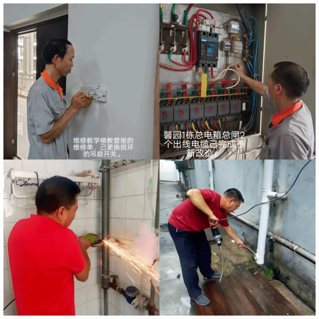 暑假是全面修缮维护水电等工程的黄金时期,后勤管理处水电维修科抓紧时间积极完成了各校区教学楼、校舍及公共基础设施的修缮项目。据悉,水电维修科假期共完成长堽校教学楼,电力楼、西江阁、邕江阁;里建校区教学楼、馨园、和园等公共基础设施项目维修工作,并完成了两校区学生公寓、教学楼、食堂的化粪池污水清理工作;为进一步完善学校教育设施功能,改进校园生活环境贡献了后勤班子力量。