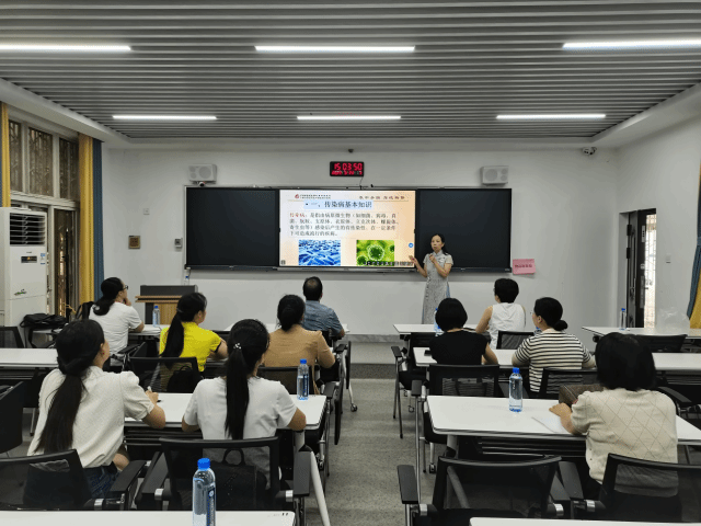 培训会上,黄妮妮主任医师结合自身工作经验,通过PPT、图片、现场交流等形式,就秋冬季常见传染病的特点、传播途径和预防等知识进行了生动、详细的讲解,重点介绍了新冠肺炎、流感、肺结核、水痘、艾滋病等学校常见传染病的防治。