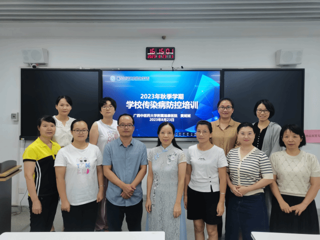 [本网讯]为全面做好2023年秋季学期传染病防控工作,认真贯彻落实《中华人民共和国传染病防治法》,提升学校卫生管理水平和传染病防控能力,切实保障广大师生的身体健康和生命安全,2023年8月23日下午,学校卫生所邀请广西中医药大学附属瑞康医院感控科黄妮妮主任医师到校开展“学校传染病防控”的培训。卫生所的医护人员参加了此次培训。
