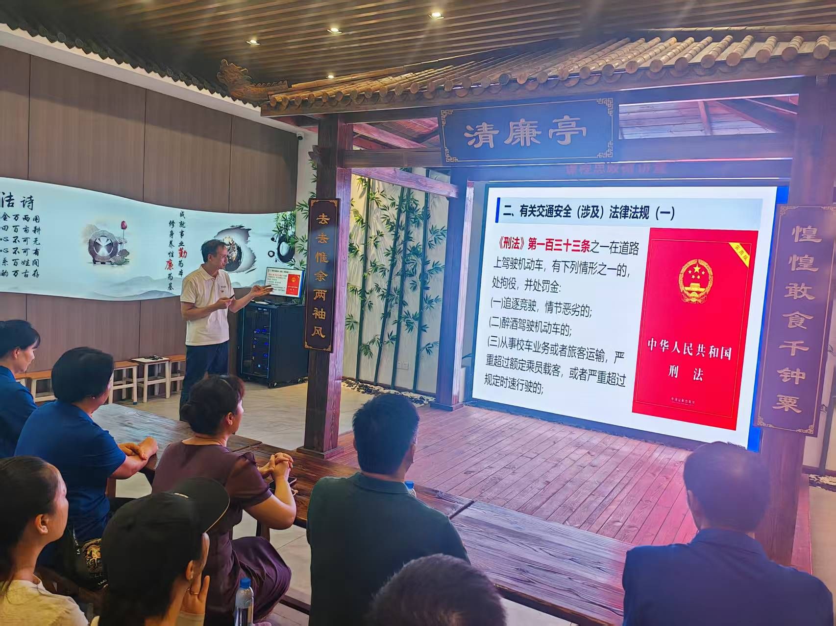技能比拼结束后,全体人员移步学校廉政教育文化馆,开展廉政教育专题学习。武鸣汽车总站安全科科长进行了驾驶安全教育培训,他结合实际案例,生动讲解了安全驾驶的要点和注意事项,为驾驶员们敲响了安全警钟。紧接着,后勤二党支部陈林泉同志讲授题为《车轮上的清廉防线》廉洁微党课,引导党员司机认清岗位风险、严守纪律规矩、主动接受监督、立足本职担当,筑牢廉洁自律思想防线,以清廉服务助力学校事业高质量发展。随后,大家一同参观了学校廉政教育文化馆,通过鲜活的案例和详实的资料,进一步强化了廉洁自律意识。