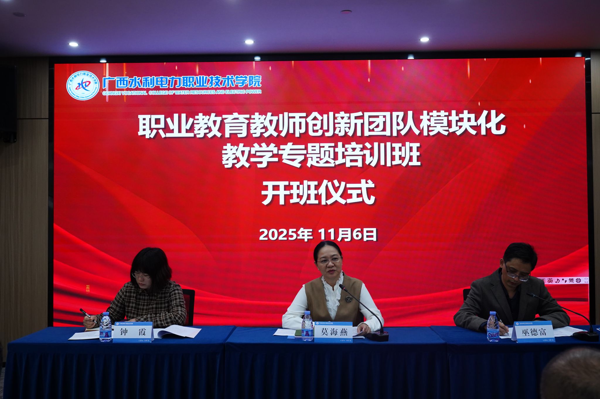 [本网讯]11月6日,学校职业教育教师创新团队模块化教学专题培训班顺利开班。学校党委副书记莫海燕出席开班式并讲话。