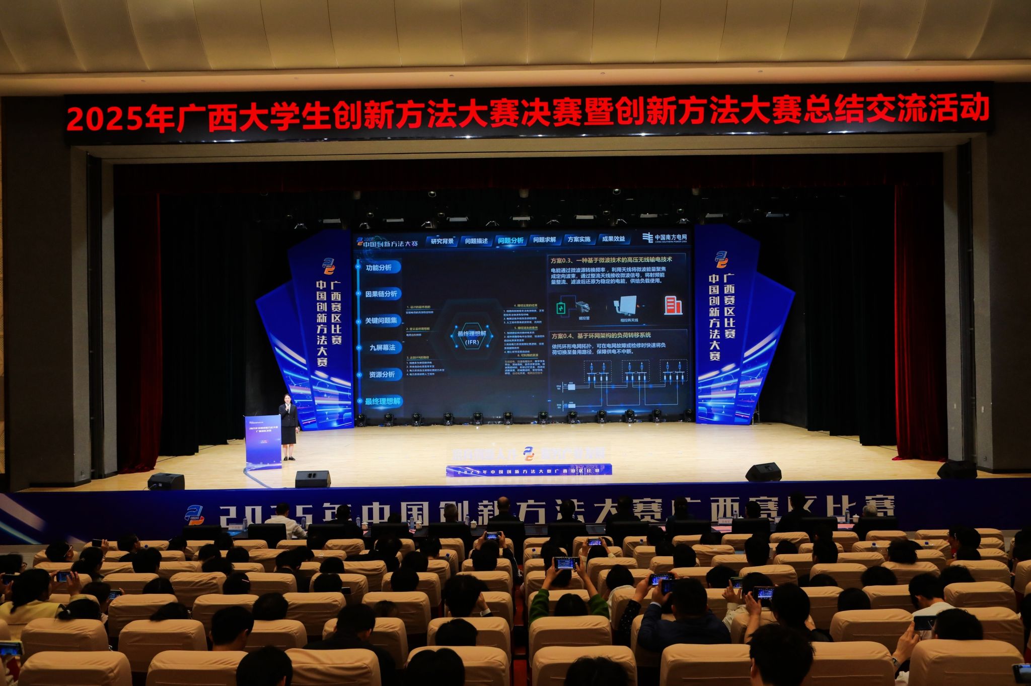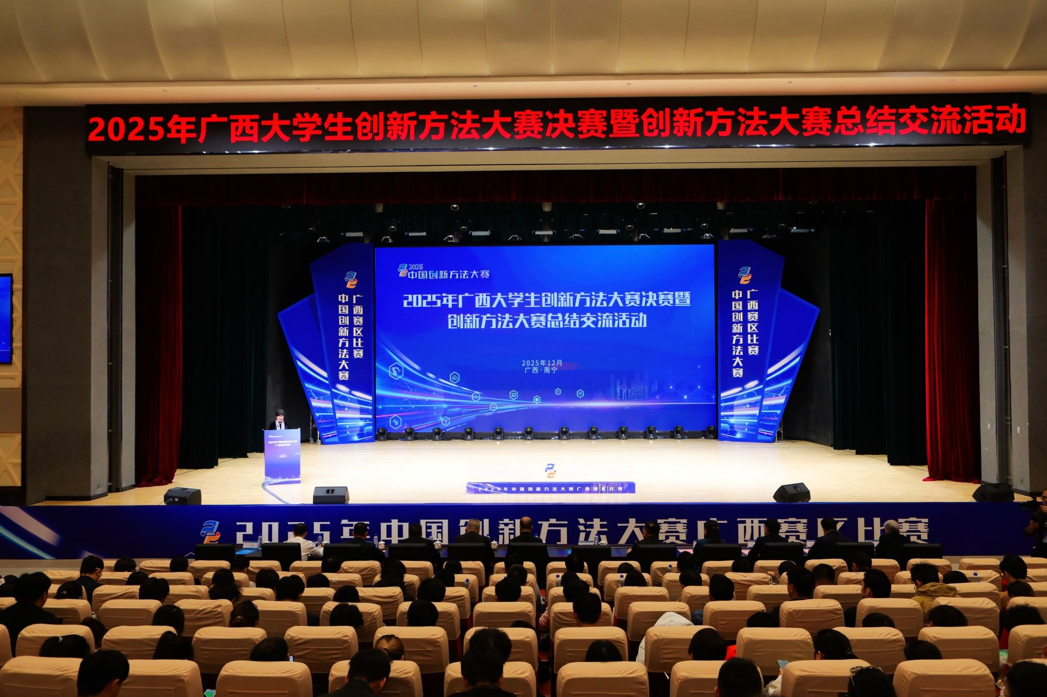 [本网讯]12月18日,由自治区科学技术协会主办、我校承办的2025年广西大学生创新方法大赛在学校里建校区圆满落幕。自治区科协党组书记、副主席梁春花,自治区水利厅总工程师韦恩斌,学校党委书记李林,自治区科技厅二级巡视员黄志标,自治区人力资源社会保障厅二级巡视员黄少坚,自治区国资委二级巡视员何载福,学校副校长周涛,广西电力行业协会理事长姚强等领导出席大赛闭幕式。闭幕式由自治区科协党组成员、副主席王鸿鹄主持。