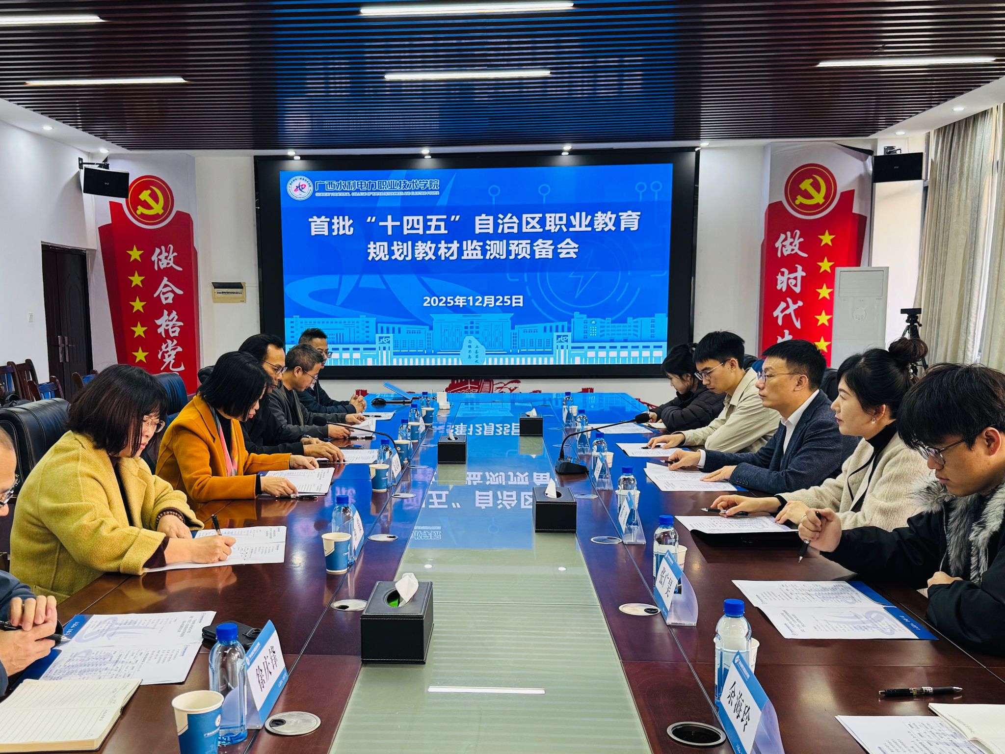 [本网讯]12月25日上午,自治区教育厅专家组莅临我校,就两部入选首批“十四五”自治区职业教育规划教材的建设与实施情况开展专项监测指导。教材监测预备会在里建校区电力工程学院会议室召开,学校副校长吴美琼出席会议,会议由教务处处长蔡永强主持。