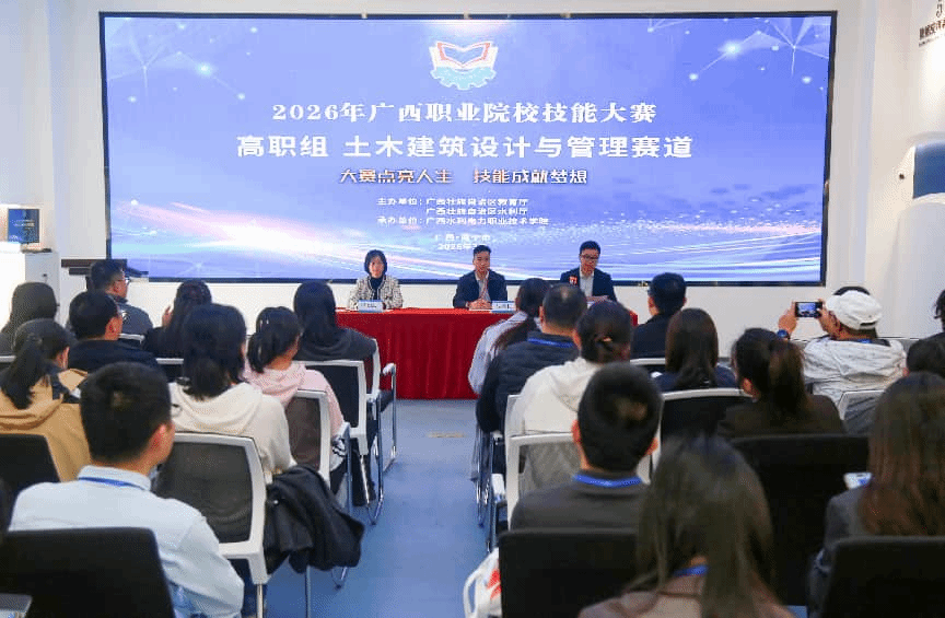 [本网讯]3月6-8日,由广西壮族自治区教育厅、水利厅联合主办,我校承办的2026年广西职业院校技能大赛高职组土木建筑设计与管理赛道在我校土木建筑工程学院顺利闭幕。来自全区21所高职院校的47支代表队、187名参赛选手同场竞技,切磋技艺。
