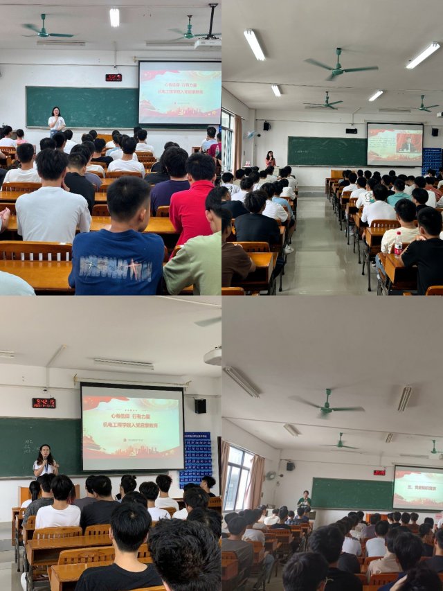 [本网讯]深化大学生理想信念教育,引导大学生积极向党组织靠拢,机电工程学院学生党支部于9月15日在里建教学楼开展2023级新生入党启蒙教育。此次入党启蒙教育由机电工程学院学生党支部教师团队主讲,2023级全体新生参加。