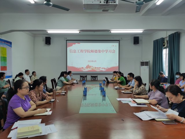 [本网讯]为持续推进学习贯彻习近平新时代中国特色社会主义思想主题教育走深走实、落地生效,进一步加强教师队伍师德师风建设,6月25日,信息工程学院开展师德师风集中学习会,学院全体教师参加。
