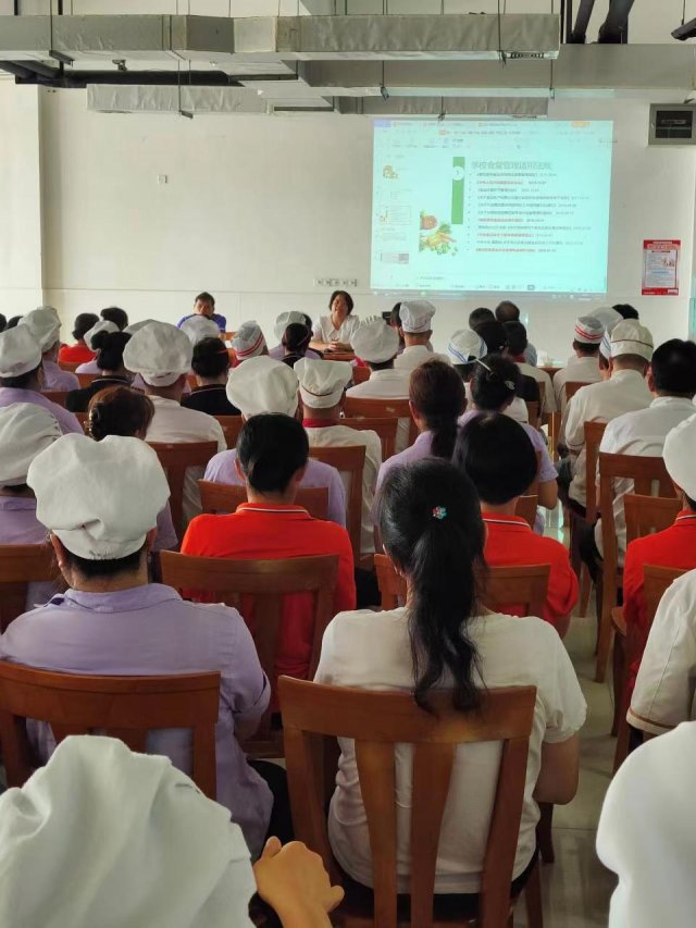 会上,韦素娟副处长通过三个食品安全典型案例,进一步强调“食堂无小事,安全大于天”,并对如何扎实做好各项食品安全工作提出了六点要求:一是提高对食品安全生产工作重要性的认识,食品安全是食堂核心工作;二是严格落实安全责任制,每个人都要承担相应的安全责任,责任重于泰山;三是要做好个人行为规范,工作期间一定佩戴口罩,杜绝带病上岗;四是要确保食材新鲜,保证数据质量,把好质量关,坚决杜绝食品安全事故的发生;五是加强环境、设施设备安全等方面的检查整改力度;六是增强服务意识,做好服务保障,提升师生对食堂用餐满意度。
