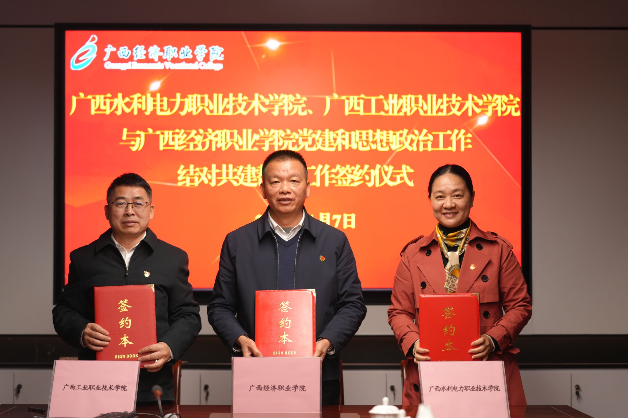 此次签约不仅是上一阶段结对共建的延续与深化,更标志着我校与广西工业职业技术学院共同对广西经济职业学院在党建与思想政治帮扶工作上迈出坚实一步。我校将以此次共建为契机,聚焦党建与思想政治工作的实际需求,与广西工业职业技术学院进一步凝聚共识、深化协作、精准施策,共同帮扶广西经济职业学院持续强化党建引领、推动资源共享、促进优势互补、实现协同发展,协力将结对共建方案转化为具体行动、实际成果和发展成效,为推动区域职业教育高质量发展贡献新的更大力量。(郭新颖/文 李浩/图)