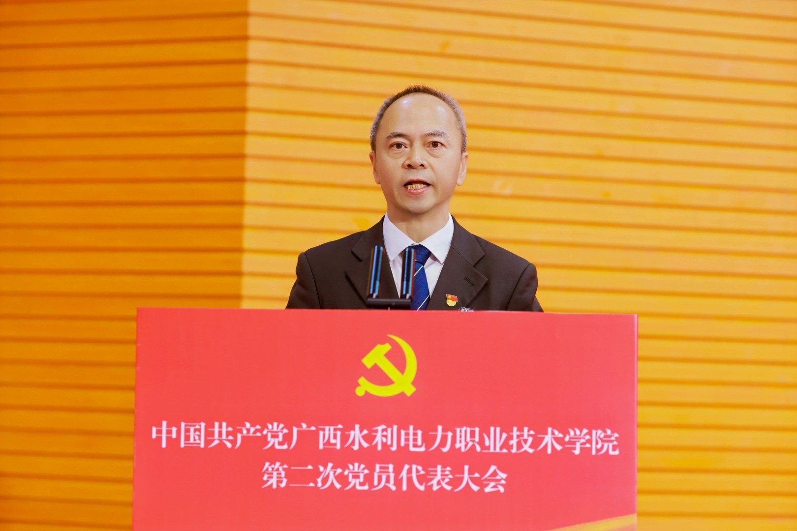 [本网讯]11月21日,中国共产党广西水利电力职业技术学院第二次党员代表大会在学校里建校区胜利召开。本次大会是在全面推进教育强国、教育强区建设的关键时期,在学校全面收官“十四五”、科学谋划“十五五”,开启国家“双高”建设、冲刺职业技术大学升格的关键节点,召开的一次重要会议。