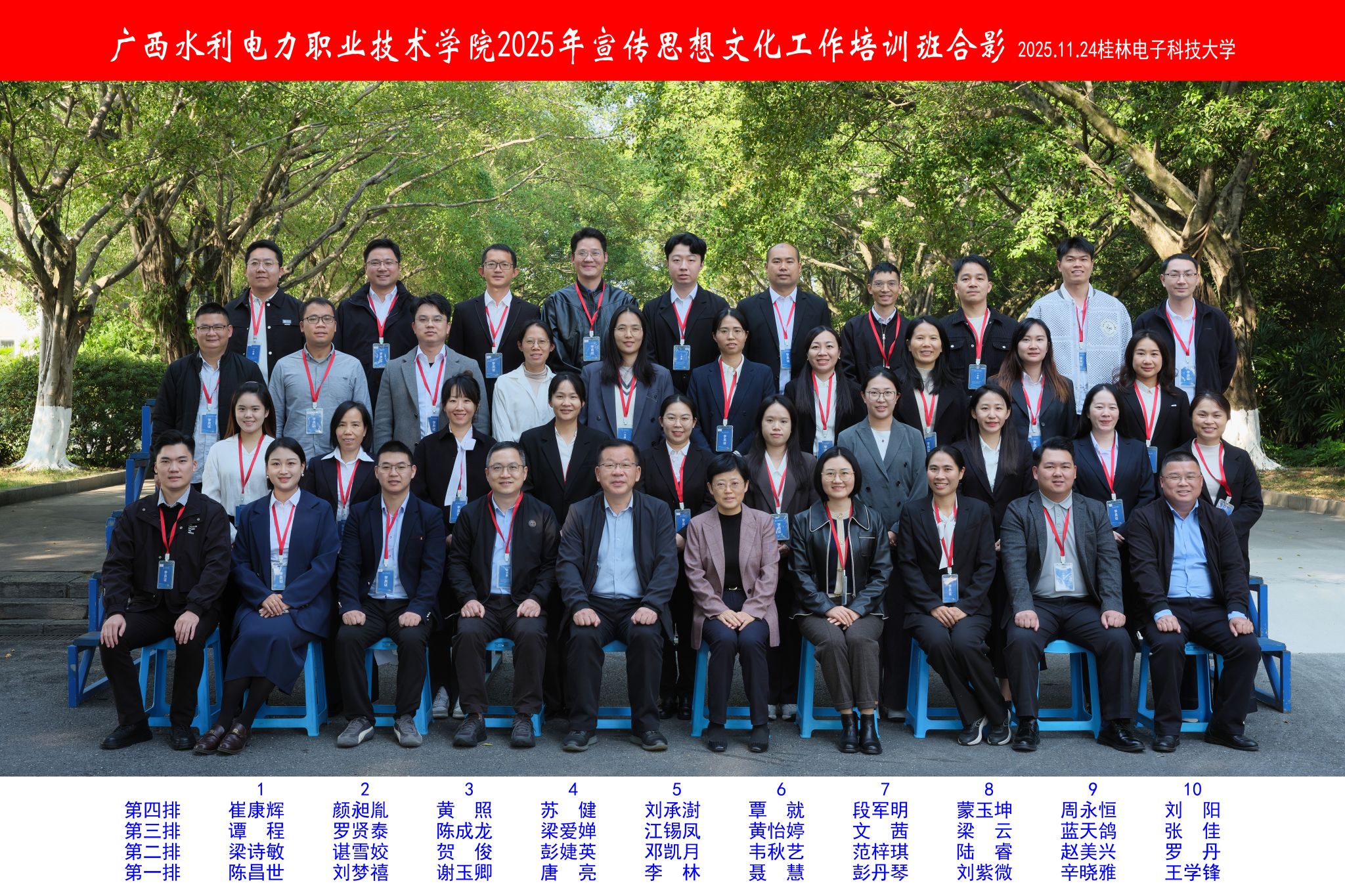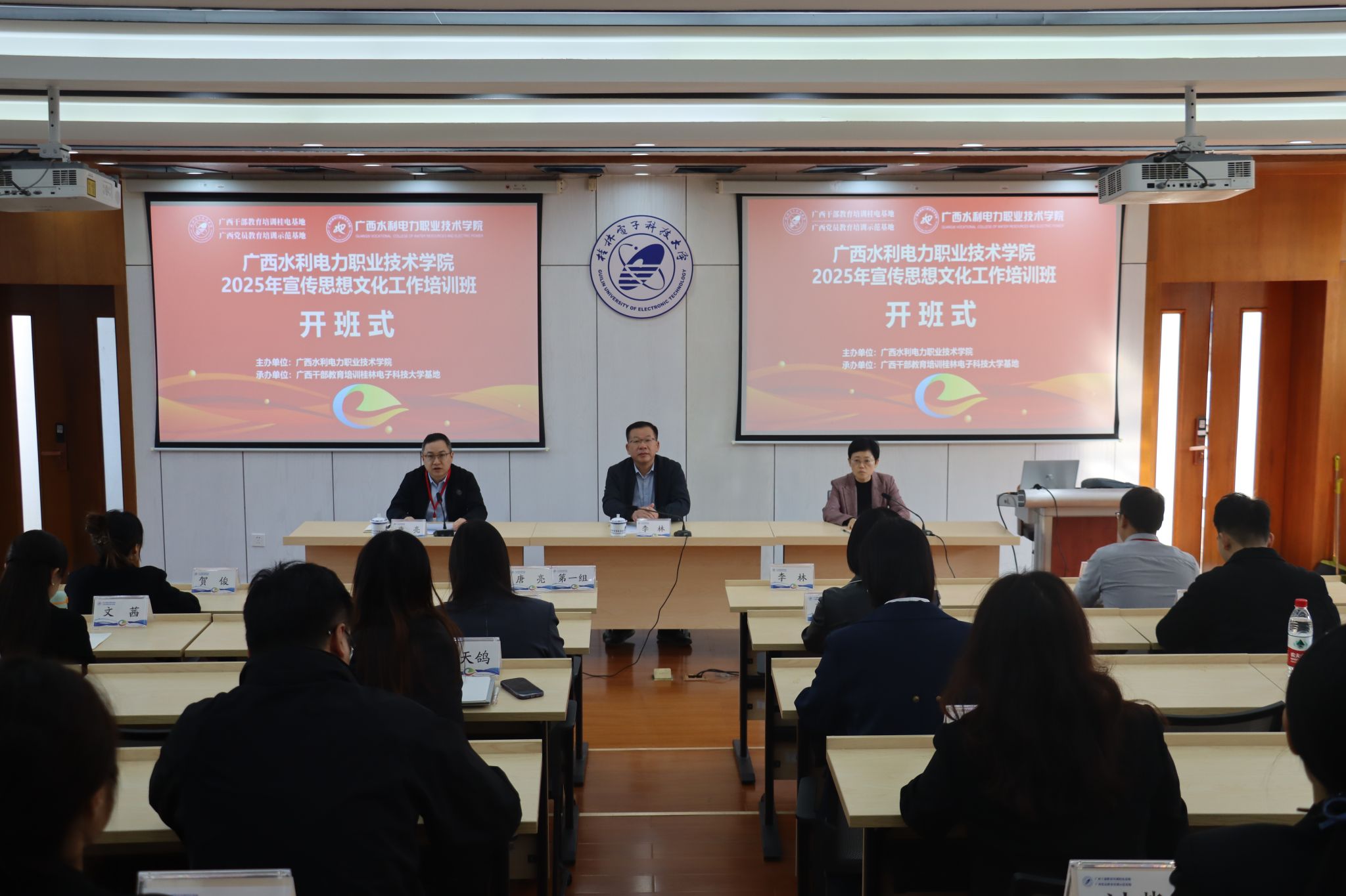 [本网讯]11月24-27日,学校2025年宣传思想文化工作队伍培训班在桂林电子科技大学举行。学校党委书记李林出席开班式并作动员讲话,桂林电子科技大学党委副书记聂慧致辞。我校党委宣传部部长唐亮主持开班式。
