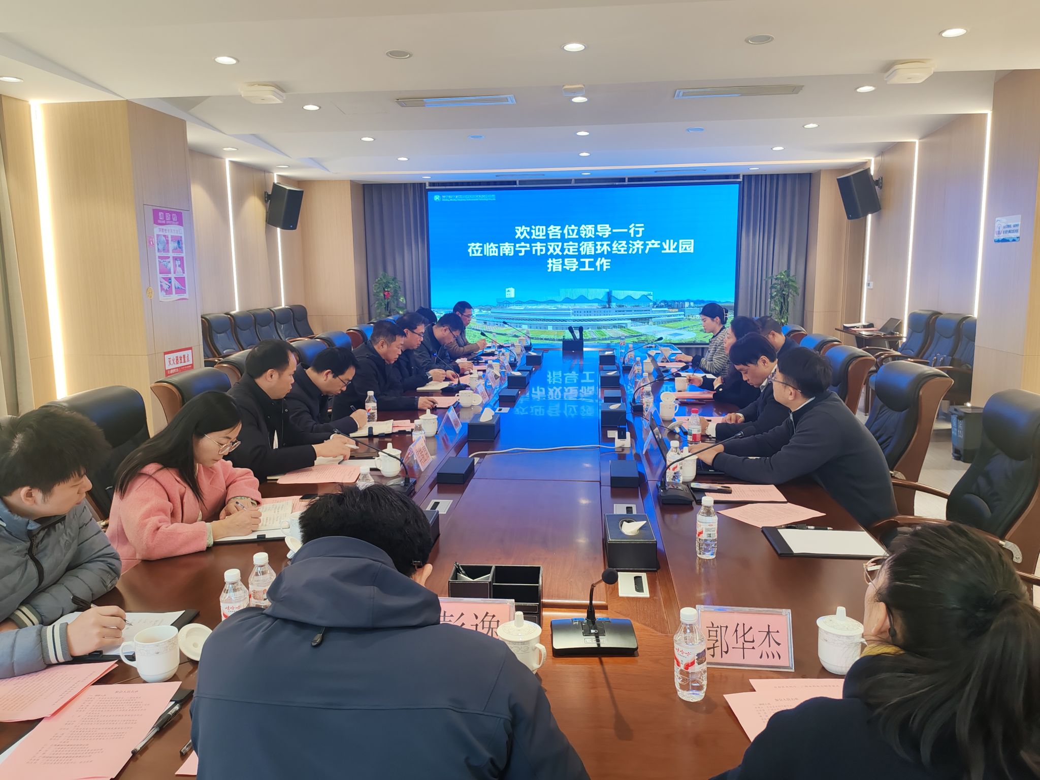 [本网讯]1月9日上午,在自治区水利厅副厅长、一级巡视员李建文的带领下,学校校长刘存香、副校长周涛率领科研工作队伍一行9人,赴广西绿城环境发展集团有限责任公司开展调研交流。受到广西绿城环境发展集团有限责任公司总经理李海燕、党委副书记赵玉明等领导的热情接待。