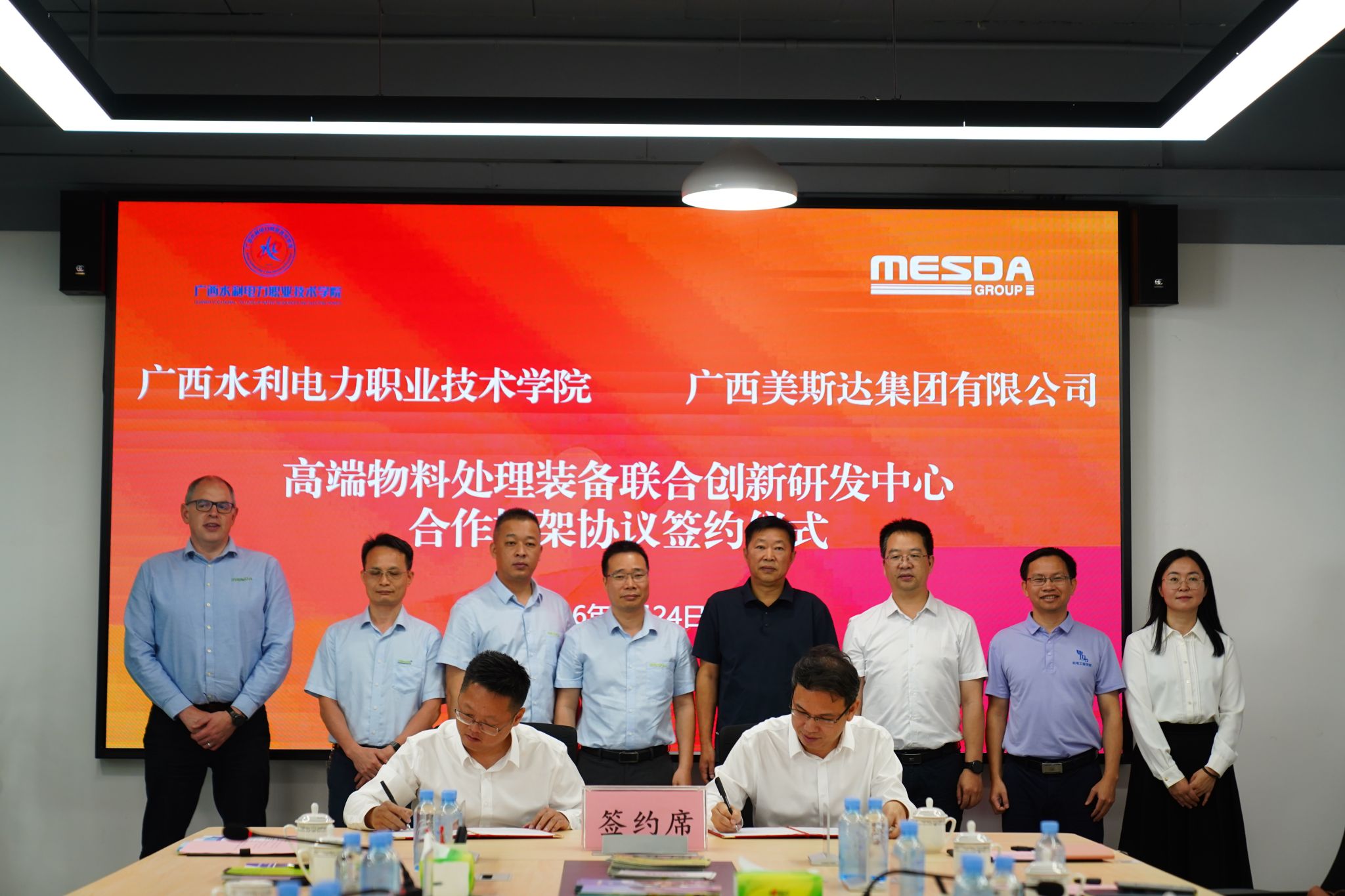 自治区水利厅科技处、人事处领导,学校发展规划与科技开发处、招生就业处、机电工程学院负责同志,广西美斯达集团相关部门负责人参加活动。(何科宇/文 李浩/图)