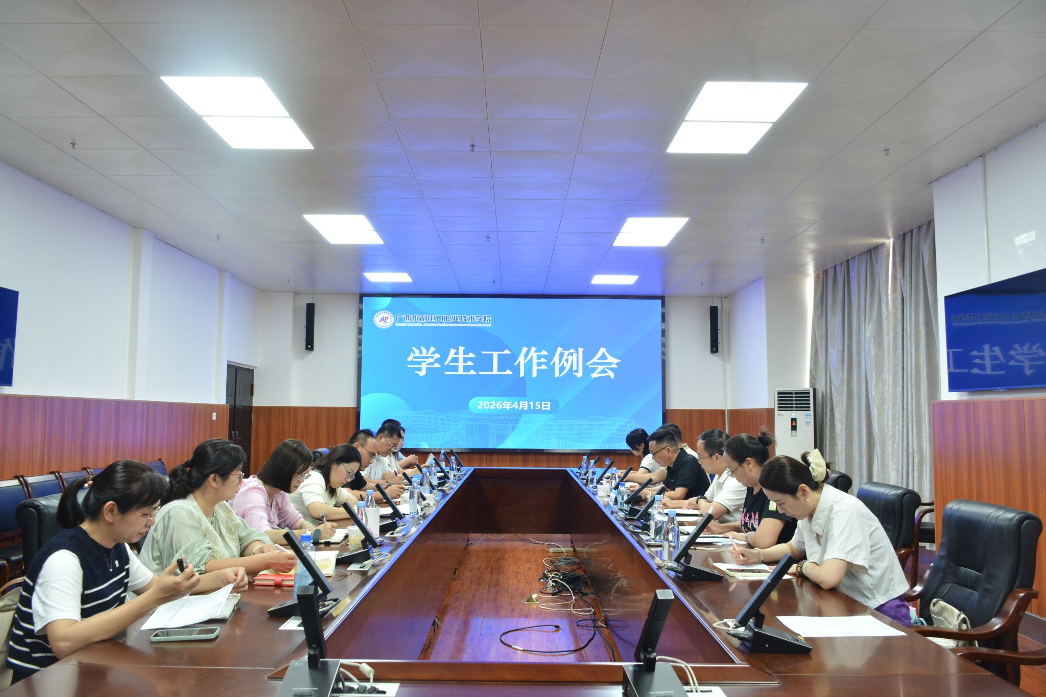 [本网讯]4月15日,学校在里建校区图书馆三楼会议室召开2026年第三次学工例会。学校副校长黄海滨出席会议并讲话,会议由党委学生工作部(学生工作处)部长(处长)李晓红主持。