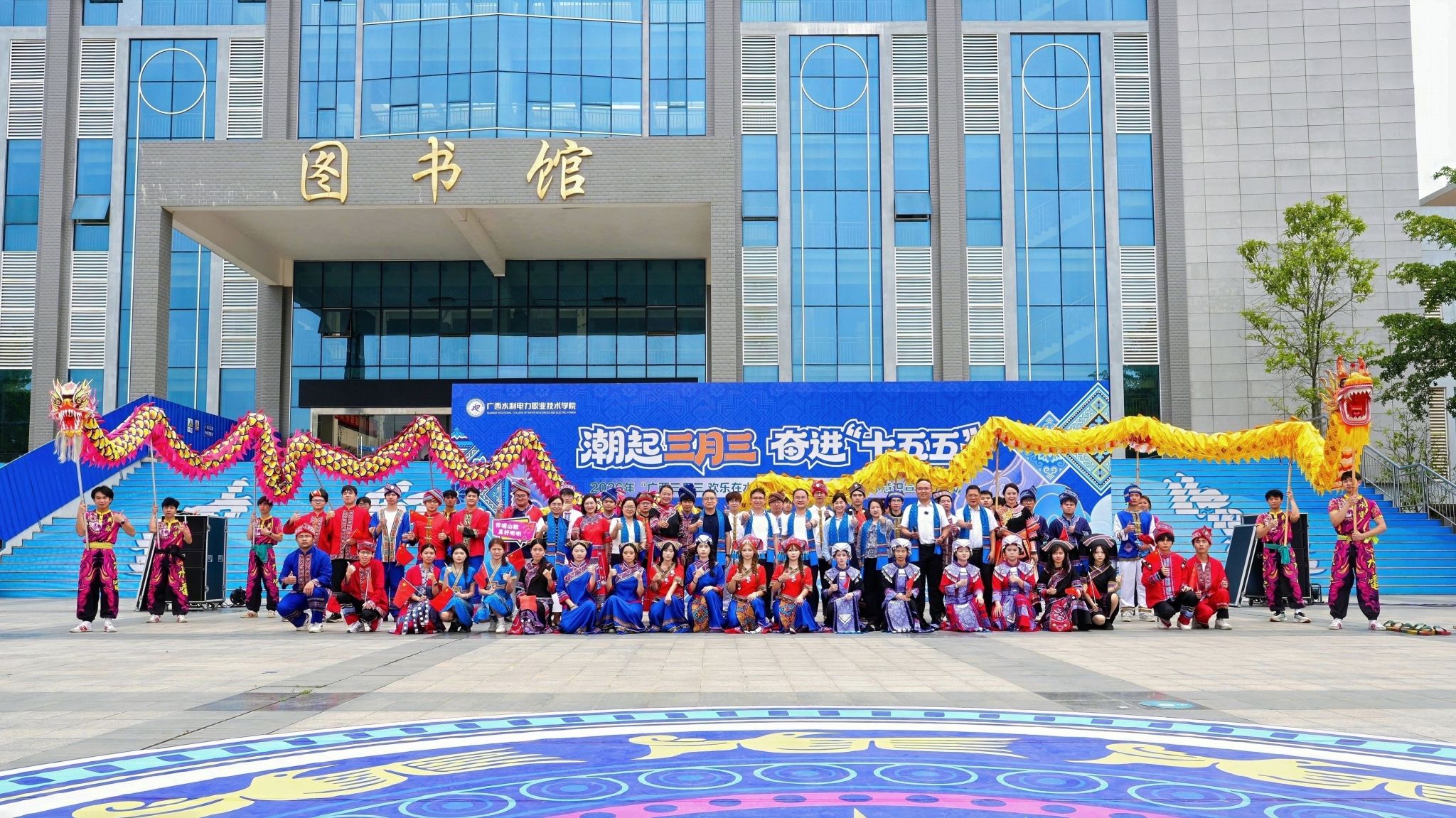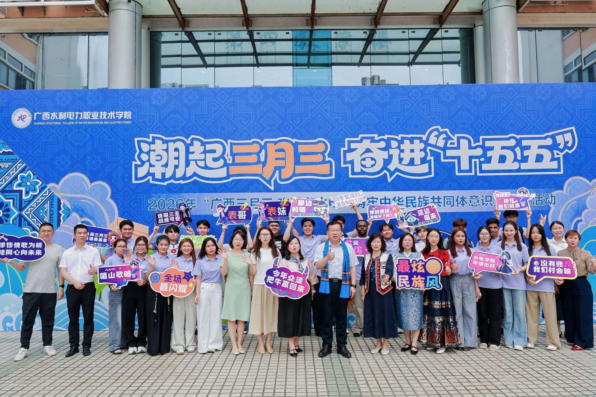 [本网讯]4月15日中午,庆祝建校70周年暨“潮起三月三·奋进‘十五五’”2026年“广西三月三 欢乐在水电”铸牢中华民族共同体意识宣传月启动仪式在两校区同步举行。党委书记李林、校长刘存香、副校长潘念萍、副校长黄海滨分别出席两校区活动。