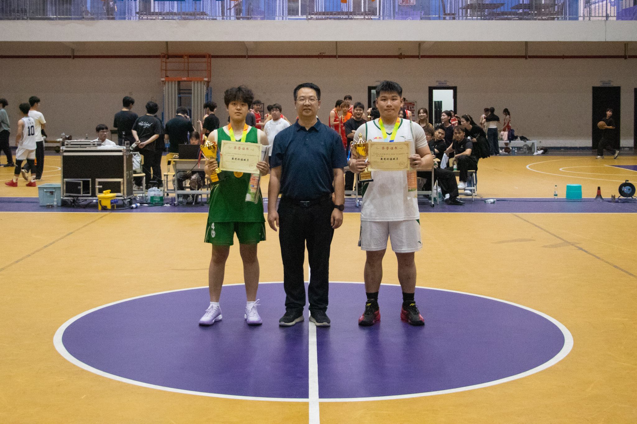 经过激烈角逐,电力工程学院一队斩获男子组冠军,机电工程学院一队获男子组亚军;女子组比赛中,电力工程学院女队摘得桂冠,土木建筑工程学院女队荣获亚军。颁奖仪式上,周涛为男女组冠军及最有价值球员(MVP)颁发奖杯与证书,其余奖项由到场领导嘉宾依次颁发。