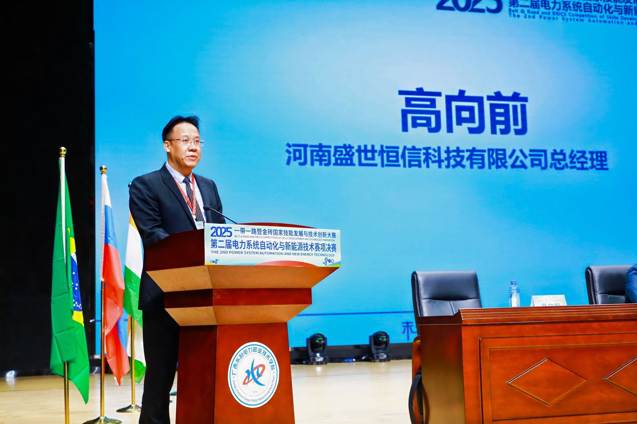 高向前在致辞中表示,面对职业教育国际化与技术技能创新的时代要求,企业必须主动承担更多社会责任。企业将充分发挥自身在电力自动化领域的技术优势,为赛事提供先进的设备平台与全面的技术保障,全力构建卓越的竞赛环境,确保选手无后顾之忧,充分发挥技术水平。