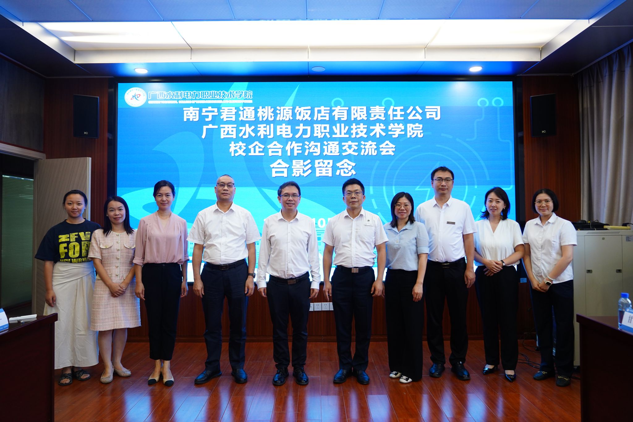 [本网讯]为深化产教融合,探索校企协同育人新路径,10月20日下午,南宁君通桃源饭店有限责任公司总经理龚爱群一行赴校交流访问。学校校长刘存香出席交流会。