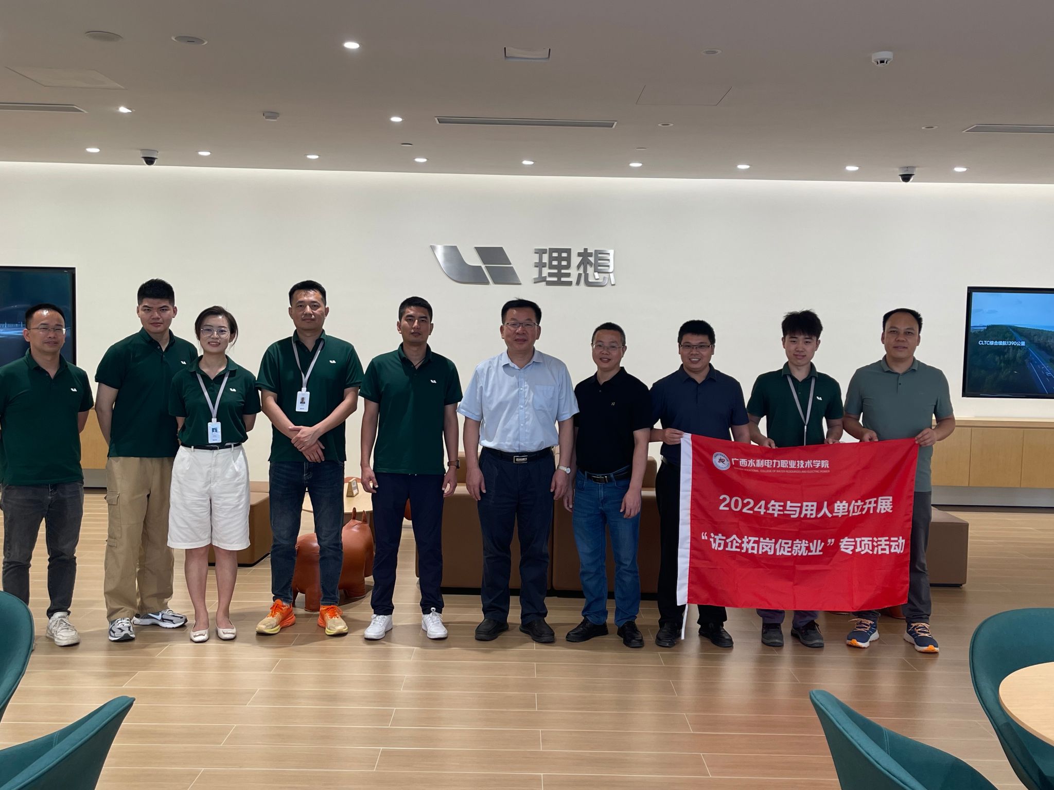[本网讯]5月29日下午,学校校长李林带领交通工程学院院长梁小流、党总支书记张海明等一行5人到理想汽车南宁售后服务中心开展产教融合调研和“访企拓岗促就业”专项活动。