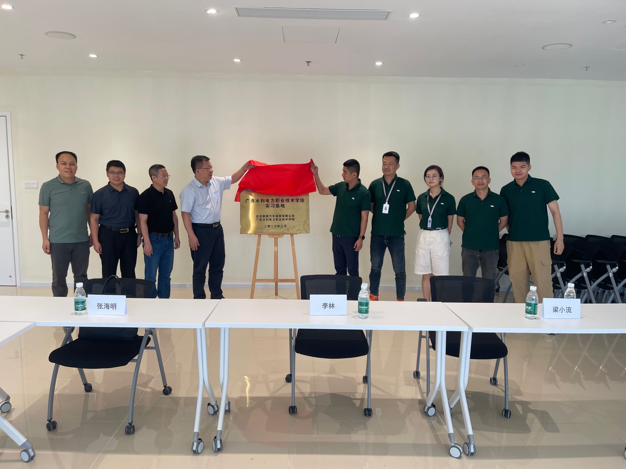 座谈会后,李林和陈俊共同为广西水利电力职业技术学院实习基地揭牌,标志着校企双方共建实习实训基地、开展产学研合作、联合培养人才工作落地落实,这对双方都具有重要的里程碑意义。