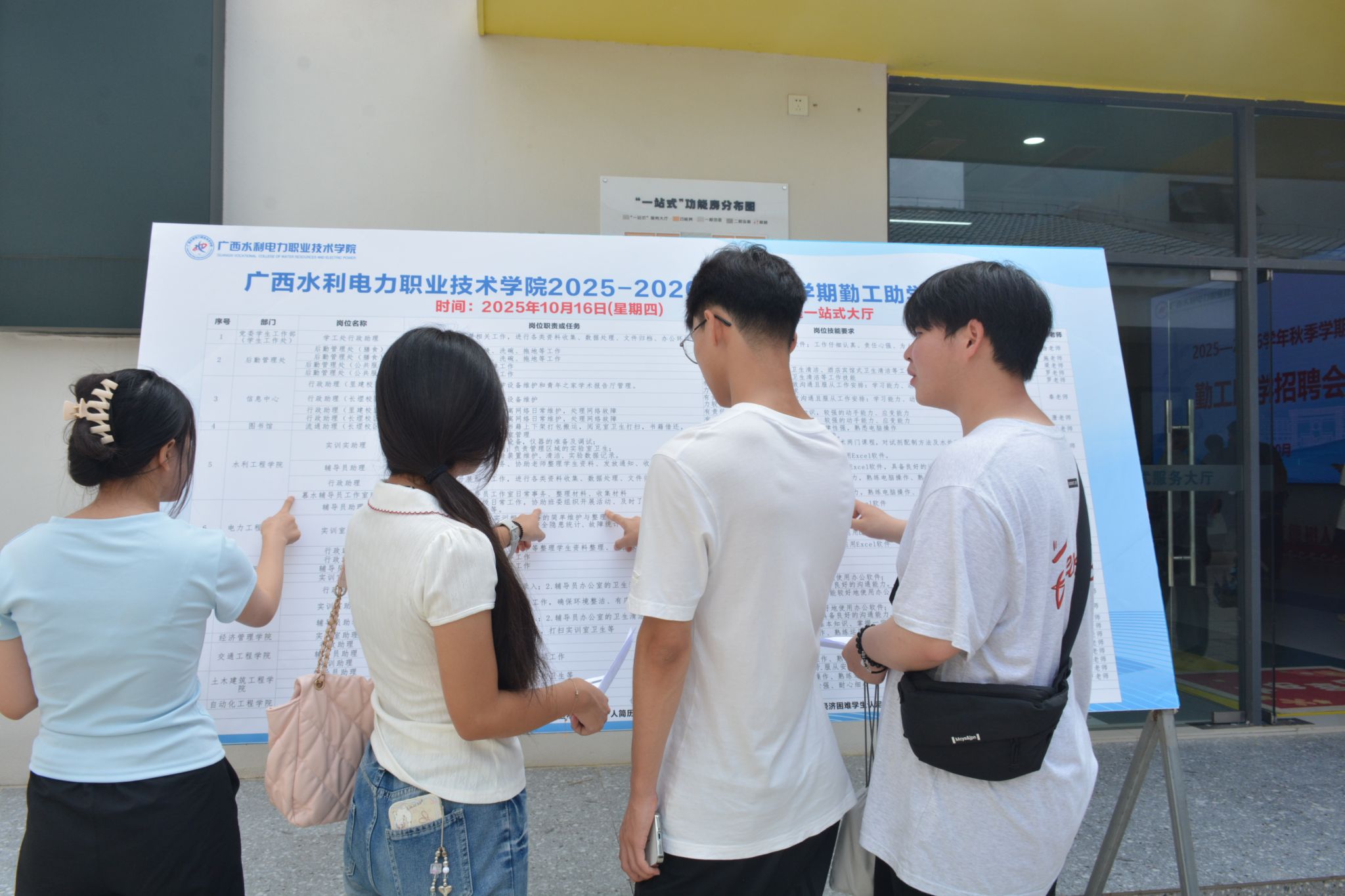 同学们正在专注查看勤工助学岗位信息表