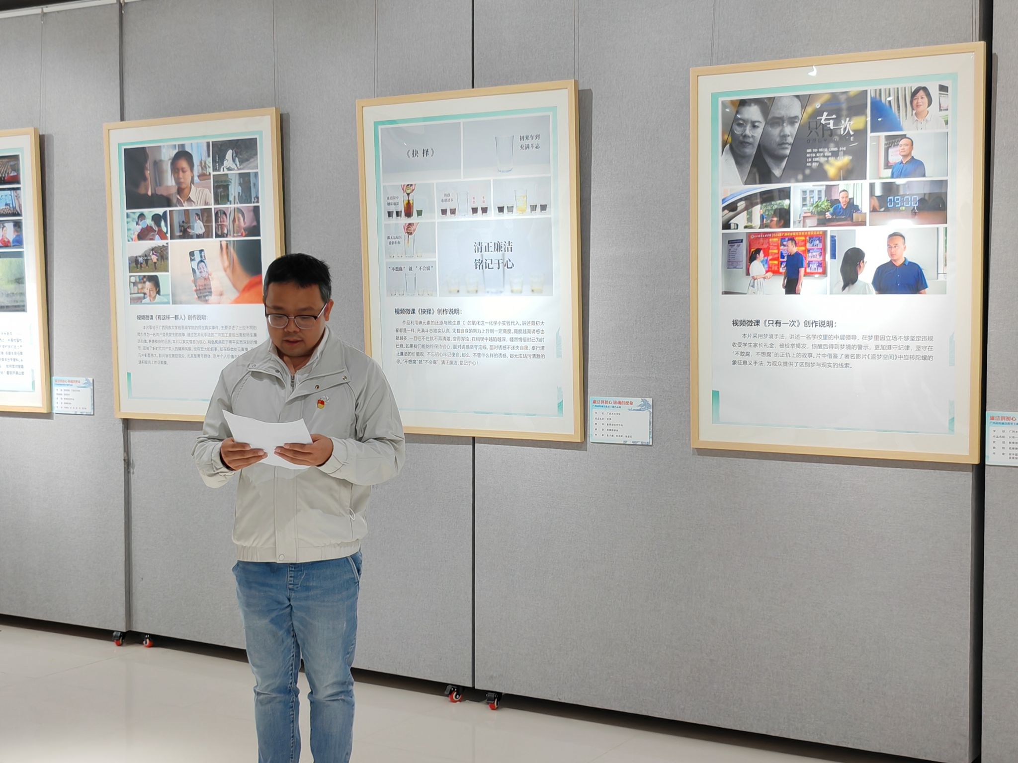 12月20日上午,全体人员前往广西艺术学院图书馆五楼参观“廉洁润初心 铸魂担使命”广西高校廉洁教育主题作品展。参观过程中,大家认真驻足观看每一件展品。期间,来自三个支部的三名青年干部结合展品感悟与自身岗位实际,开展“青年干部清廉说”分享活动,分别畅谈了对廉洁从业的理解、对青年干部使命担当的认知,用青春视角诠释廉洁初心,引发了现场人员的强烈共鸣。全体参与人员从丰富的展品与真挚的分享中,深切感悟廉洁文化的精神力量,进一步加深了对廉洁从业重要性的认识,筑牢了廉洁自律的思想防线。