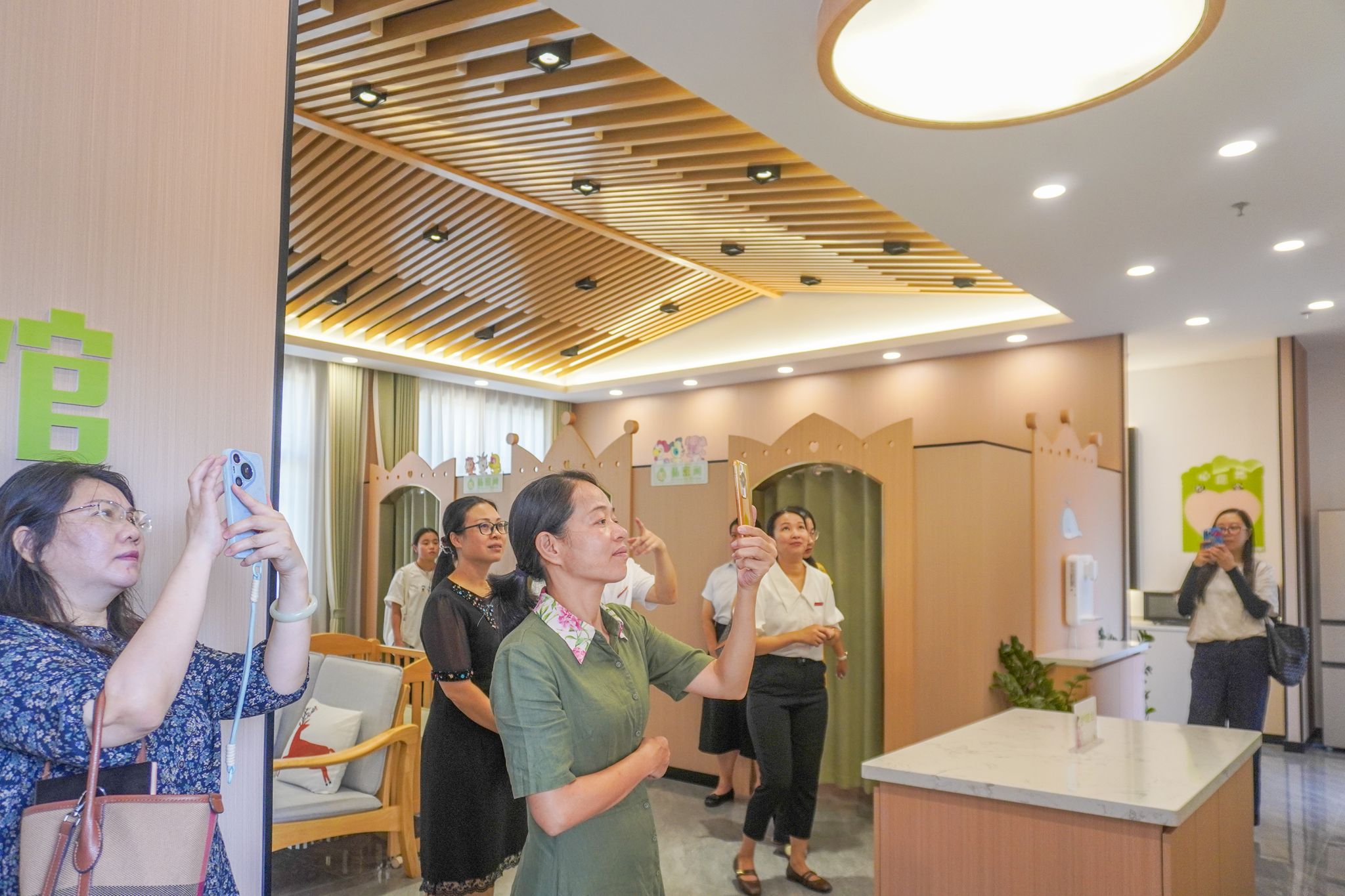 最后,陈春带领大家先后参观了武鸣校区的校史馆、新时代职工之家健康运动体验馆、爱心母婴体验馆等,三方并就场馆管理、使用率等进行探讨交流意见。