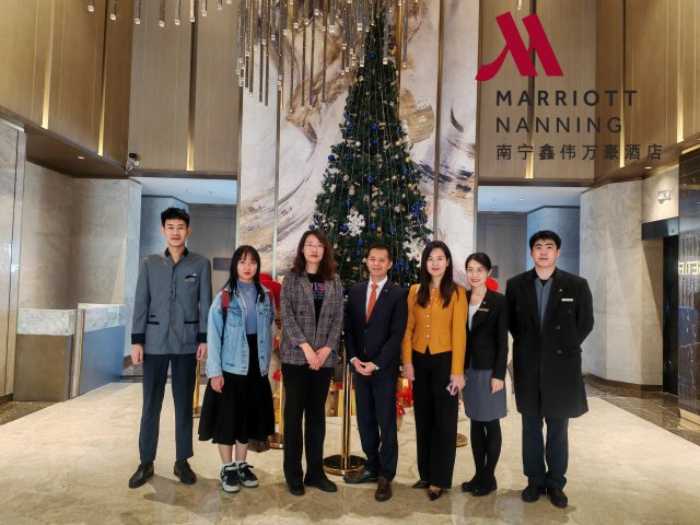[本网讯]为推动产学研协同创新,寻求校企合作共赢、共谋发展良好局面,12月7日下午,经济管理学院副院长王晓迪、酒店管理与数字化运营负责人徐逢春、就业负责人张平平前往南宁鑫伟万豪酒店看望在此实习的10名学生。