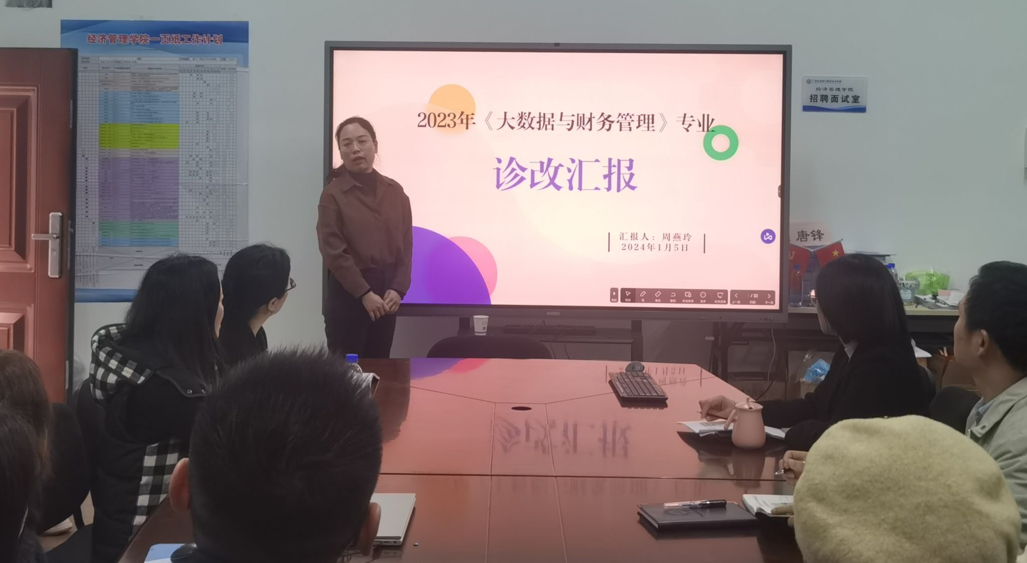 大数据与财务管理专业负责人周燕玲作专业层面的诊改汇报;陈华炎和黄玥两位老师分别作课程层面的诊改汇报;尹彬老师做教师个人层面的诊改汇报。各层面通过目标链的传导、标准链的打造,以“一页纸”工作计划为抓手,分析了2023年度的工作情况、存在的问题不足以及下一步工作计划等进行了比较全面、详细的汇报。