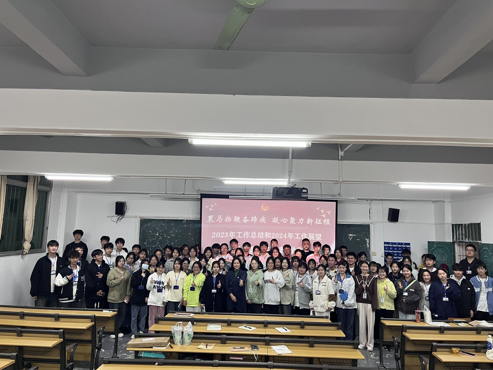 会议围绕总结思奋进、计划展未来、使命促担当三个内容进行。会议开始,首先由学院团委、学生会各部门代表进行发言,主要就2023年各部门开展的工作内容、措施成效、分工合作、不足与改进以及2024年工作的展望等内容进行汇报和交流。每一个部门学生干部代表的发言,都是学生们通过学习、工作、活动实践后得到的收获和感悟,不仅是个人的心得体会,也是部门小伙伴之间的共同体会。在谈及不足和改进的方面,大家都能根据实际不足的问题提出改进的思路和措施想法,对2024年各项工作活动的期望与要求更高了。