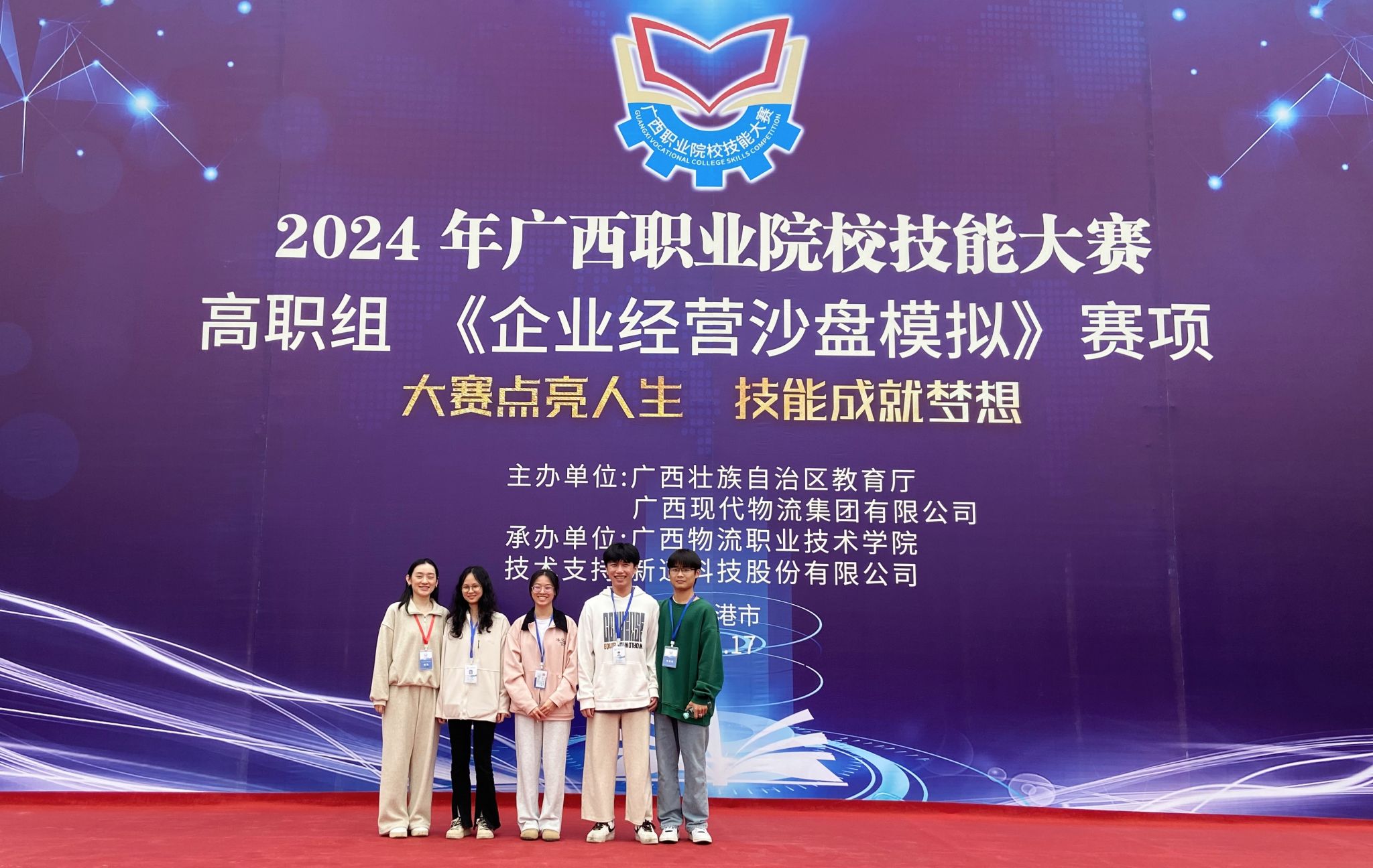 2024年3月,广西职业院校技能大赛财经商贸大类高职组各赛项如期举行。广西水电职院经济管理学院高度重视,积极动员、认真部署,充分发挥“党建+”引领作用,由教工支部、学生支部组织遴选先锋队备赛参赛,参加了高职组《人力资源服务》《市场营销》等13个赛项。各参赛队顽强拼搏,沉着应战,凭借过硬的专业技能、稳定的发挥和良好的团队合作精神,共斩获一等奖5项,二等奖4项,三等奖9项。其中,5个一等奖的赛项分别是《人力资源服务》《市场营销》《企业管理模拟沙盘》《企业经营沙盘模拟》和《商务数据分析》。
