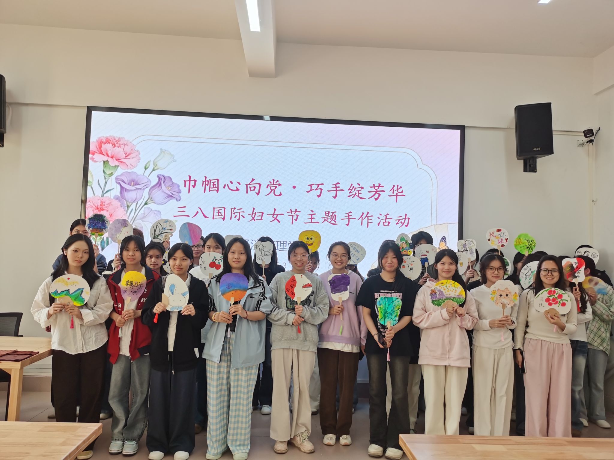 [本网讯]春风送暖,芳华绽放。为庆祝第116个“三八”国际劳动妇女节,进一步丰富女师生精神文化生活,展现新时代女性的风采与活力,3月6日下午,经济管理学院党总支、分工会、团委联合主办的“巾帼心向党·巧手绽芳华”三八国际劳动妇女节主题手工活动在经管实训楼3-5、3-6活动室成功举办。活动设置插花与彩绘团扇两个体验区,吸引了学院女教师和女同学积极参与,在花香与创意中共度温馨愉悦的春日时光。
