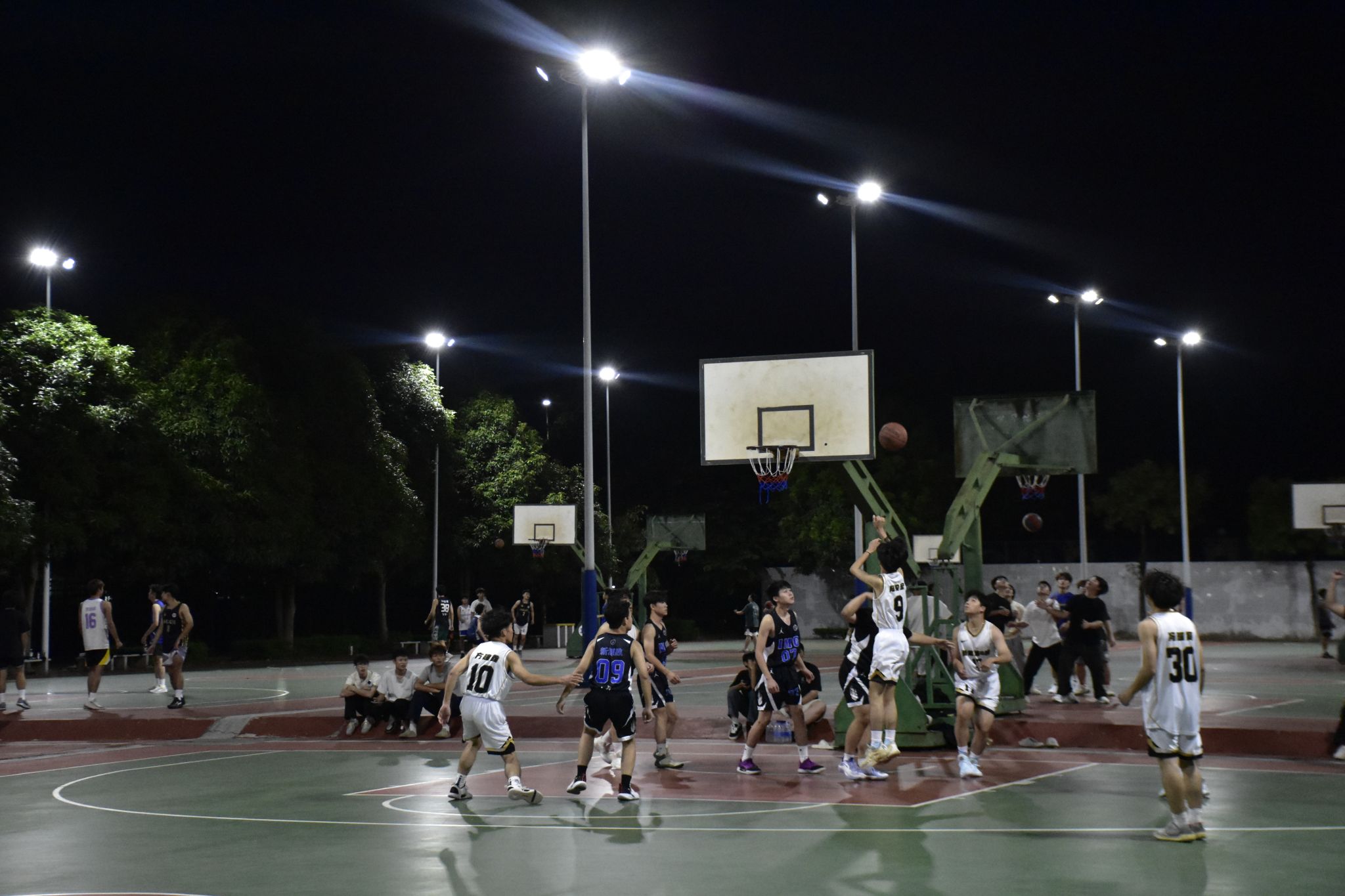 开幕式结束后,篮球赛正式打响。赛场上,队员们默契配合、奋力拼搏,每一次精准的投篮、每一次成功的防守,都引发现场观众的阵阵欢呼。篮球与地面碰撞的节奏、裁判清脆的哨声与场边的助威声交织在一起,共同奏响了本届“新生杯”篮球赛的激昂序曲。