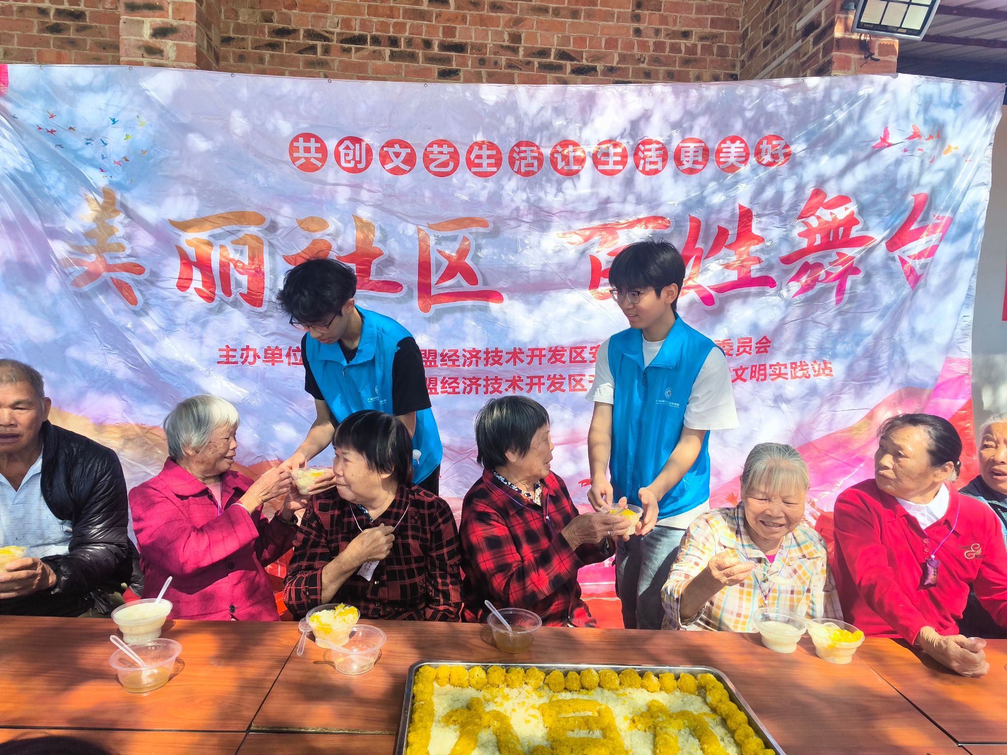 活动最后,志愿者们与社区工作人员将精心准备的重阳糕、汤圆等节日美食分送到每一位老人手中,并送上诚挚的节日祝福。香甜的美食与温情的话语,让老人们脸上洋溢着幸福的笑容。