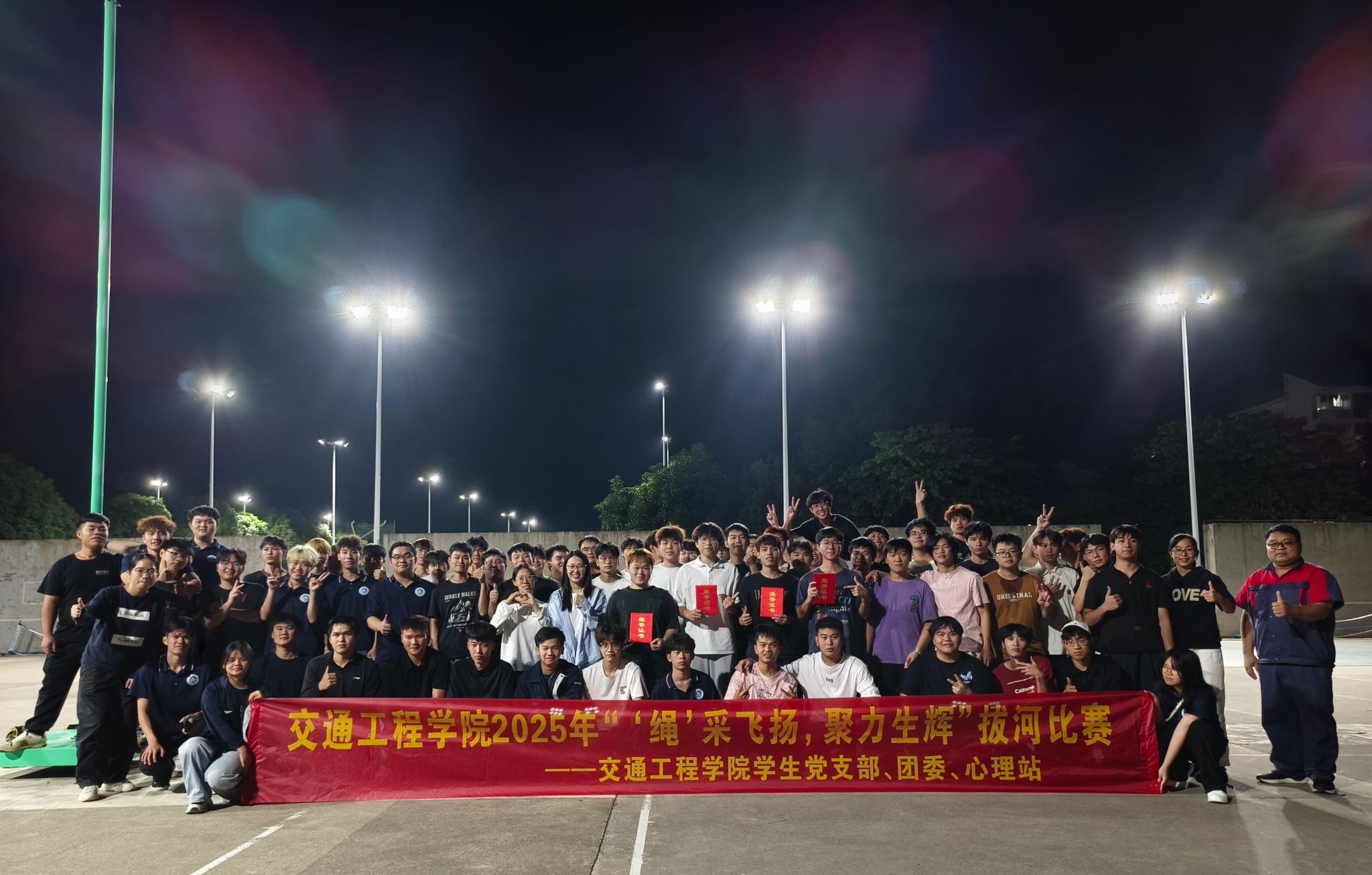 [本网讯]为丰富校园文化生活,增强新生集体凝聚力,展现2025级学子团结拼搏的风采,10月24日—10月28日,由交通工程学院学生党支部、团委学生会及心理站联合主办的“绳”采飞扬 聚力生辉大一新生拔河比赛,在里建校区体育场火热开赛。