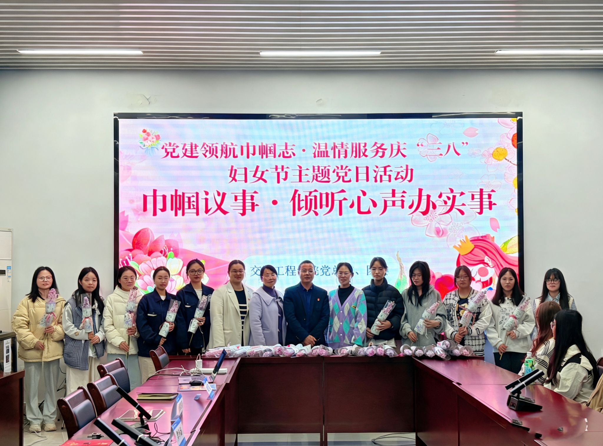 [本网讯]为庆祝“三八”国际妇女节,倾听女大学生心声、关注女大学生权益,3月4日晚,交通工程学院党总支、团委在里建校区交通工程学院会议室联合举办了“巾帼议事·倾听心声办实事”女大学生座谈会。交通工程学院院长梁小流、组织员梁展榕、团委书记梁爱婵、辅导员代表以及学院的50名女大学生代表参会。