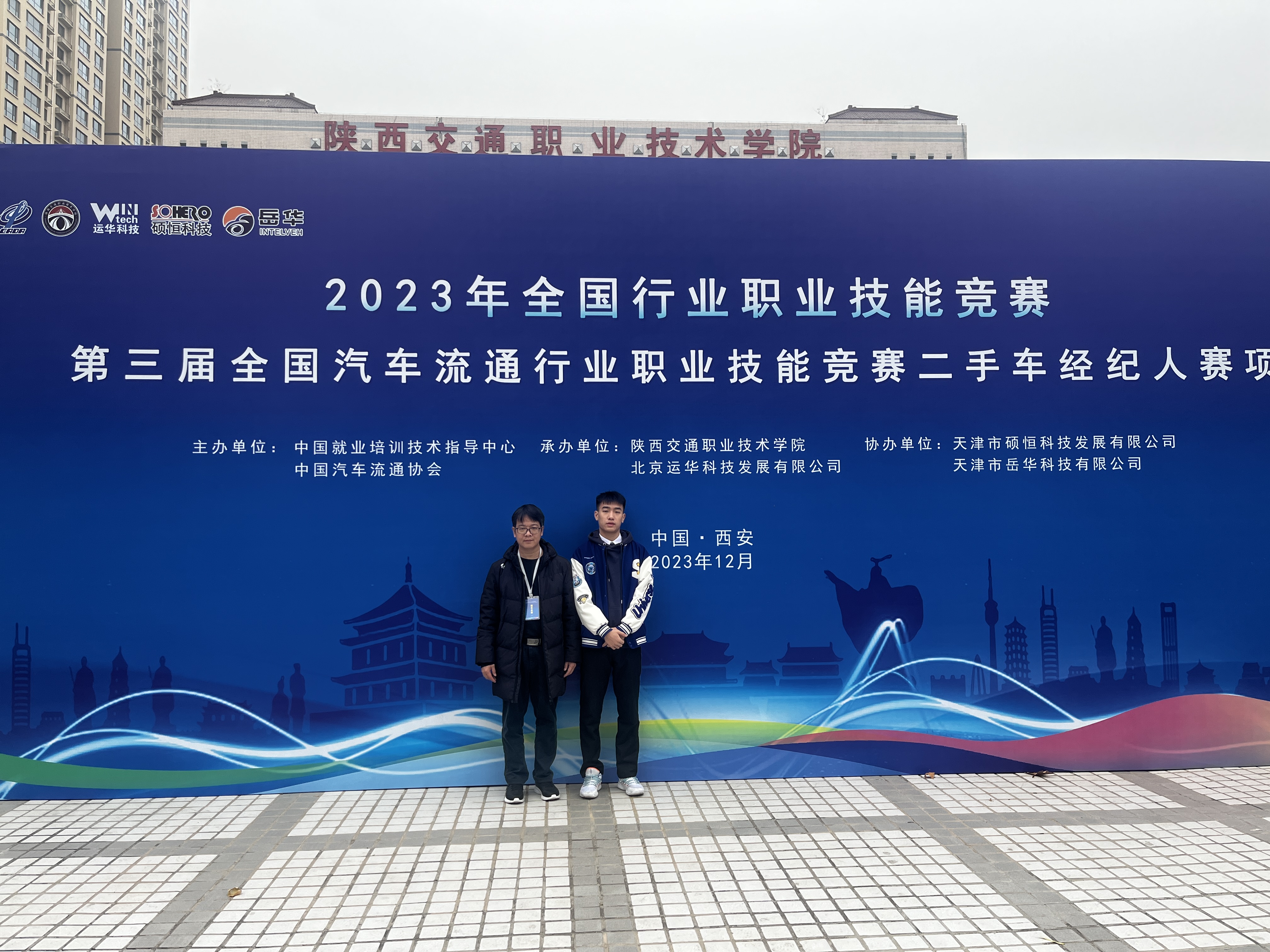[本网讯]由中国就业培训技术指导中心、中国汽车流通协会联合主办,陕西交通职业技术学院等多部门承办的2023年全国行业职业技能竞赛--第三届全国汽车流通行业职业技能竞赛二手车经纪人赛项全国总决赛在陕西西安落下帷幕,学校交通工程学院2022级汽车技术服务与营销2班的蒋旻宇同学在二手车经纪人赛项总决赛中荣获全国三等奖。