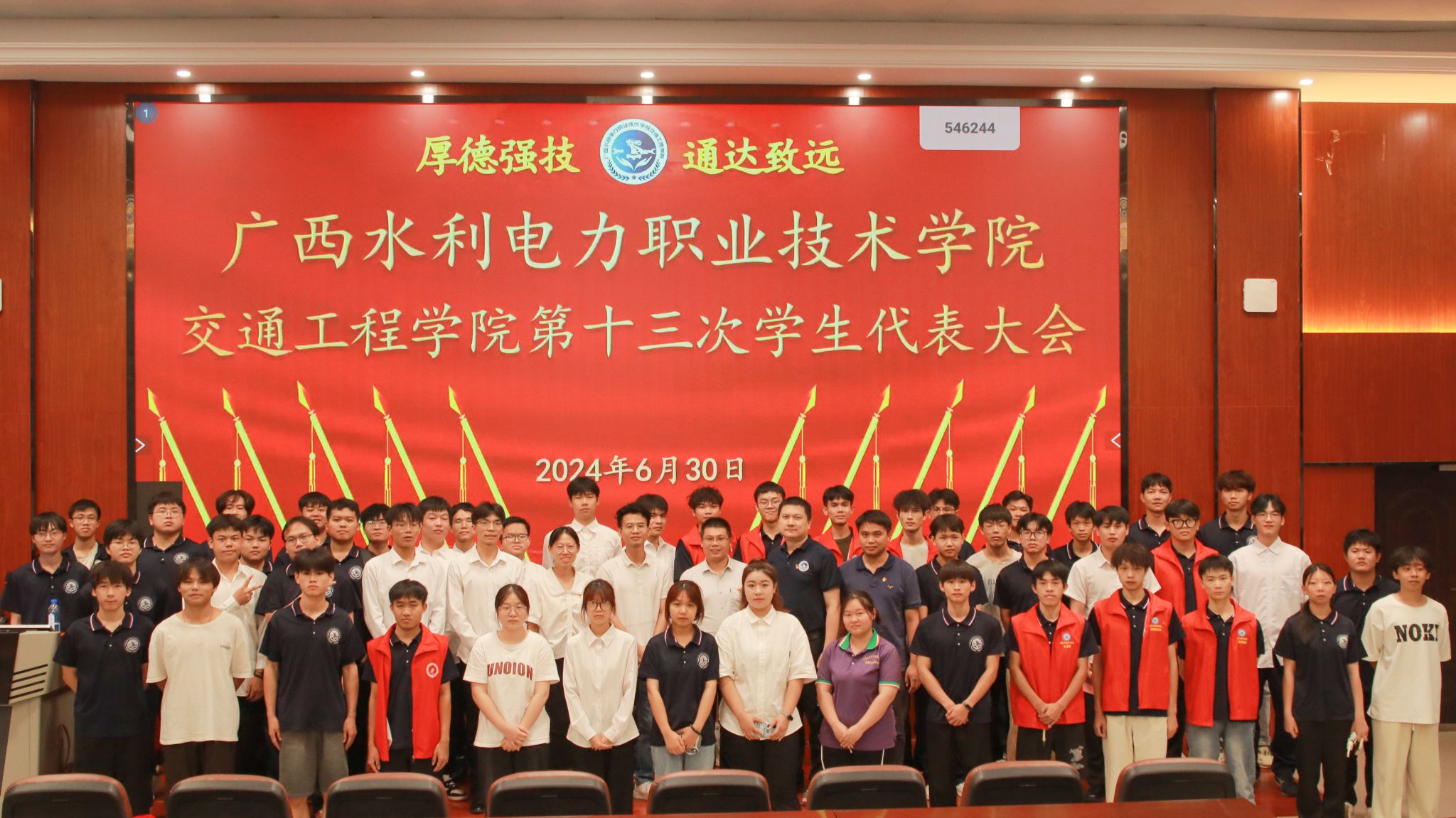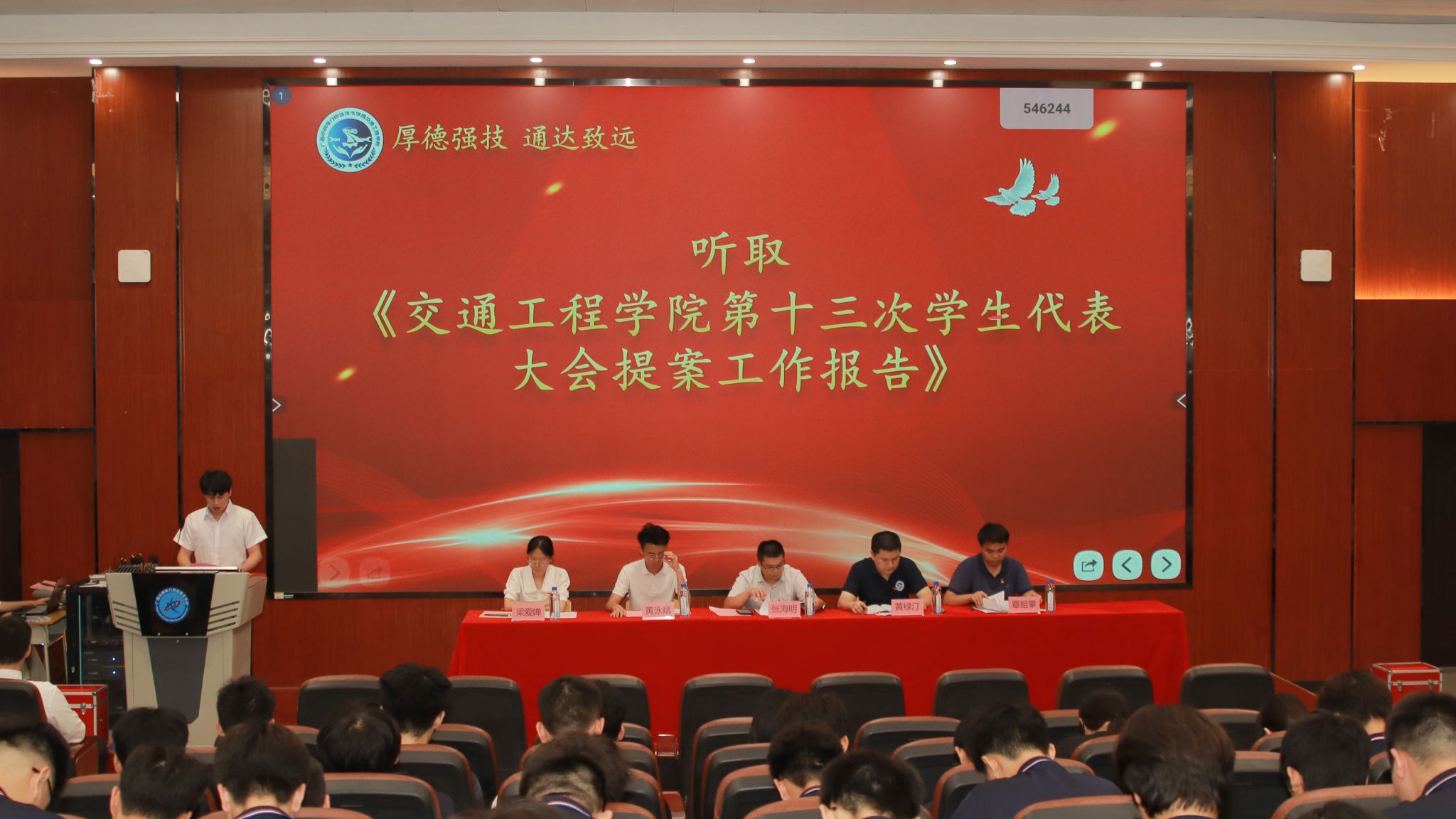 [本网讯]为充分发挥青年学生的积极作用,6月30日晚,交通工程学院第十三次学生代表大会在里建校区教学楼二楼报告厅顺利召开。学院党总支书记张海明、团委书记黄绿汀、团委副书记梁爱婵、机电工程学院团委负责老师黄泳斌及学院辅导员代表出席会议,学生代表128人参会。