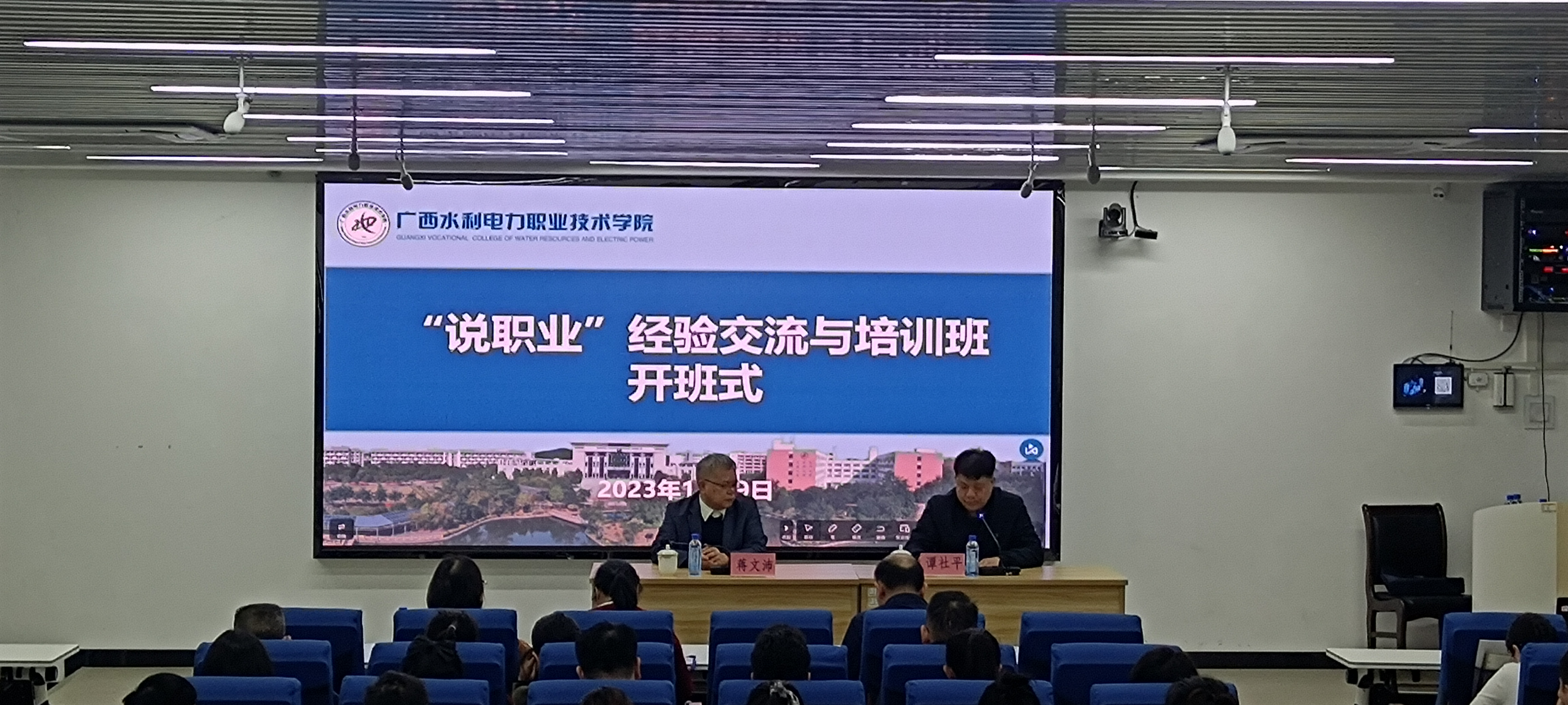 [本网讯]为进一步推广与深化职业院校工作过程知识竞赛,12月9日,“说职业”活动经验交流与培训班在我校长堽校区顺利开班。本次培训班由我校蒋文沛副校长授课,来自全区各中高职学校的90余位领导、教师参加了此次培训。继续教育学院院长谭社平主持开班仪式。