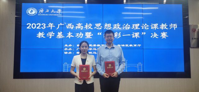 [本网讯]为进一步提升我区高校思想政治理论课教师的教育教学能力,10月15日,广西高校思想政治理论课教师基本功比赛暨“精彩一课”决赛在广西大学举行,我校马克思主义学院教师张丛磊老师、陆睿老师荣获高职组一等奖。