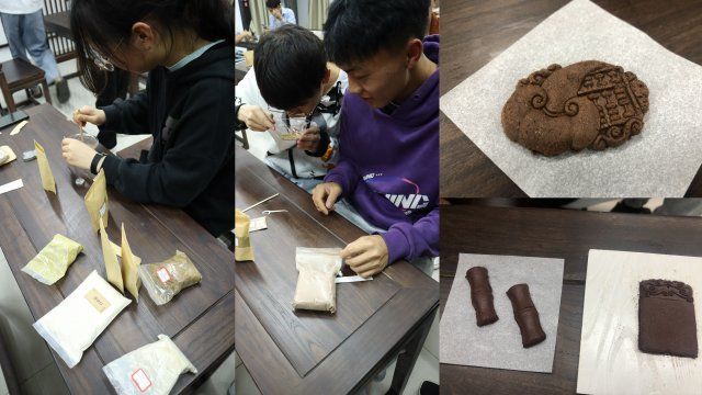 张老师首先向同学们说明了香牌蕴含的文化。香牌是我国传统文化的精粹,盛于唐宋,广行于明清。采用象征中国文化特征的图案为面,表达了古人特有的哲学和意趣;其香韵悠远,制作时需要淡泊寂寥之心,佩搭时彰显静逸的情致。然后,张老师分发了制作香牌的香料及工具,开始指导同学们制作香牌。从选香开始,从檀香、沉香、桂香、洛神花香等数十种香粉中选取符合自己喜欢的主香,再配以辅香,加上粘合粉及硬化剂,慢慢加水调和至水粉融合。这一过程需要耐心细致,若比例失调,诸香竞争,最后形成的香牌就失去了平和深幽的意境。香泥经醒便可入模制形,再用刀、签、勺进行修制,有些同学几经反复才得到一枚自己满意的牌面。最后,香牌还需阴干、饰穗才能最终成品。同学们在整个制作体验过程中兴趣盎然,收获良多。