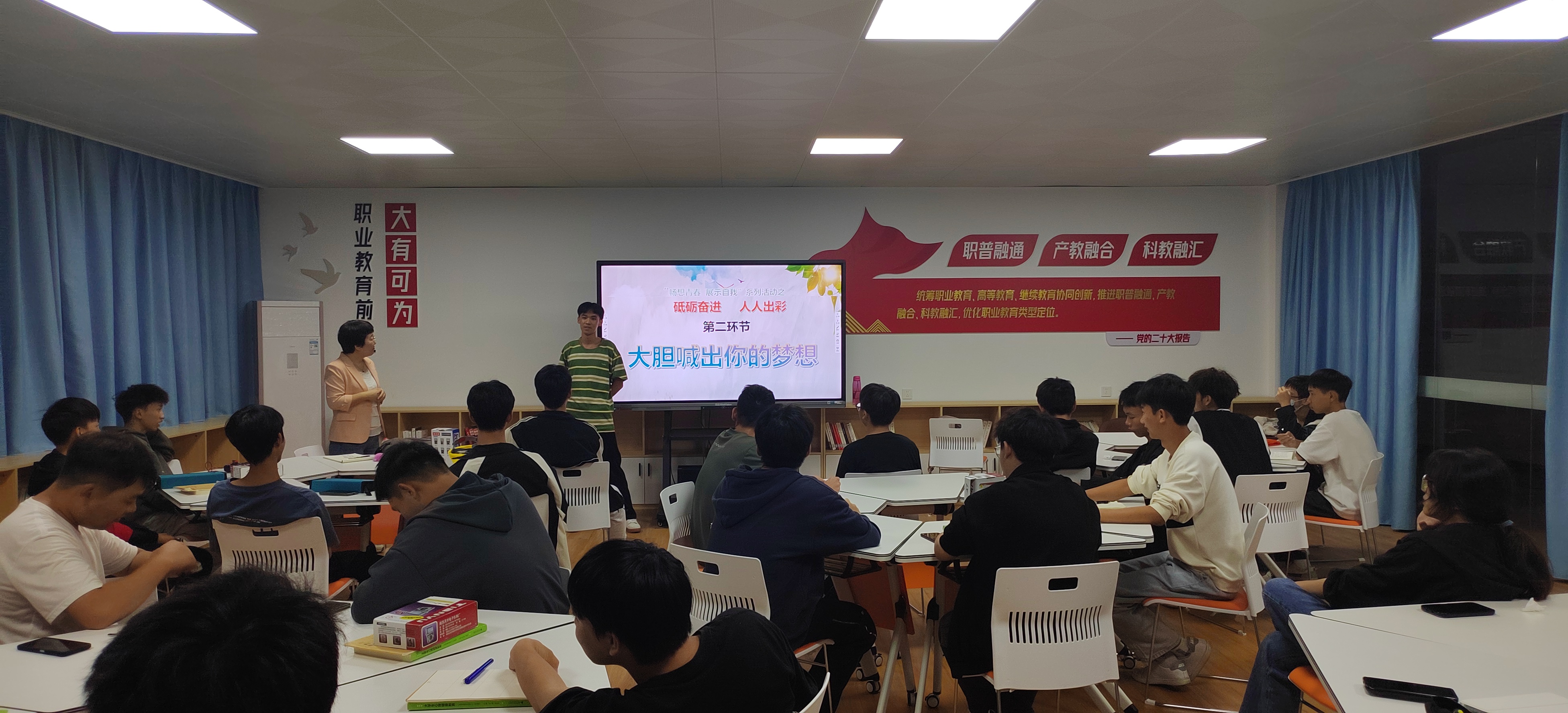 本次活动是“畅想青春 展示自我”系列活动之一,分三个环节进行。首先,通过播放短片让同学们深刻认识到在全面建设社会主义现代化国家新征程中,职业教育前途广阔、大有可为;其次,同学们进行了音乐、演讲等特长展示,并结合特长或专业讲述了自己的青春梦想;最后是互问互答环节,每位同学结合自身现状认真思考,写出梦想实现路上的最大障碍,同时选择其他一位同学的困难给予切实可行的建议,教师作补充引导。