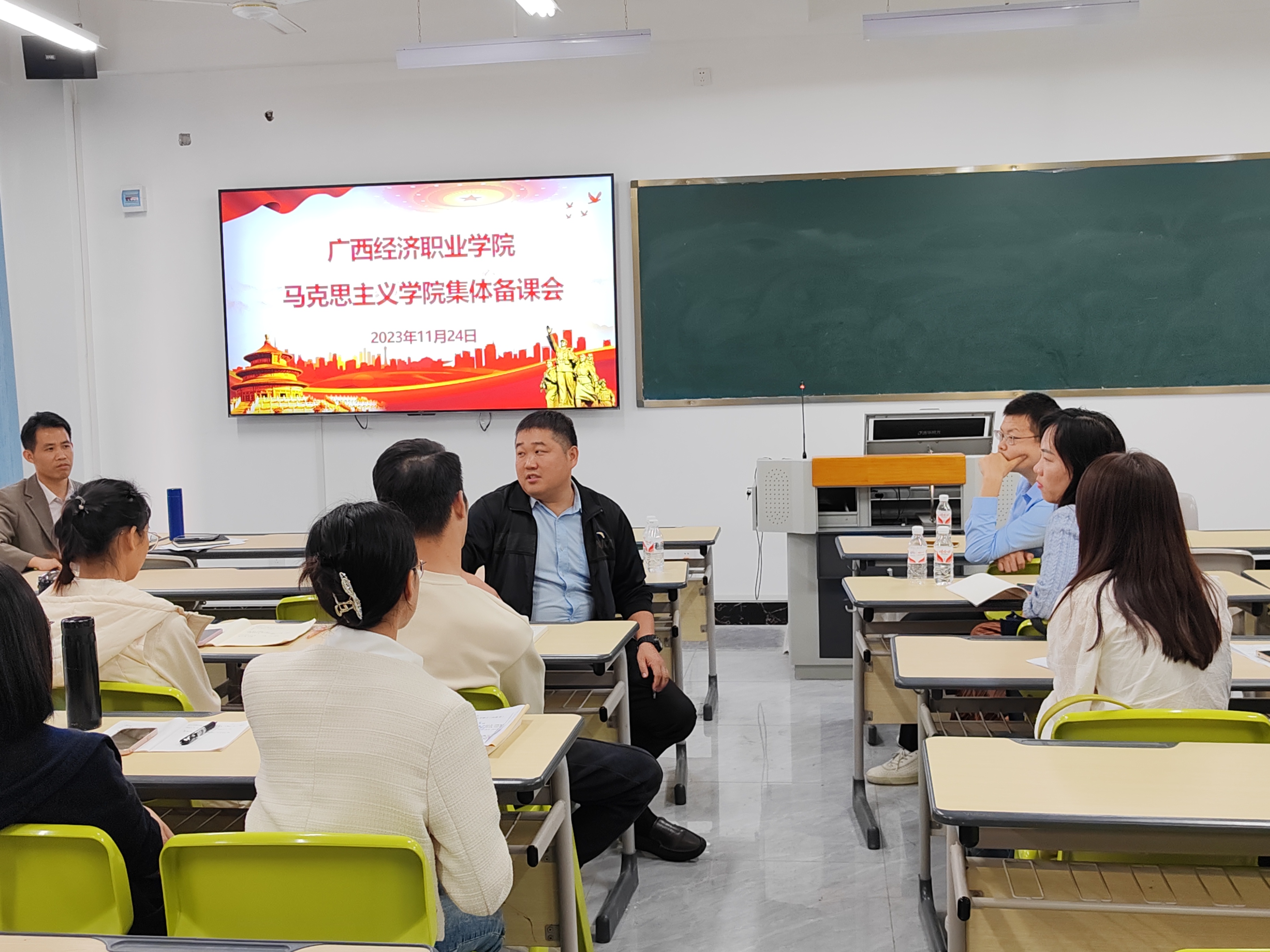 [本网讯]为深入贯彻落实习近平总书记在学校思想政治理论课教师座谈会上的重要讲话精神,高质量办好高校思想政治理论课,加强结对共建院校的共建发展,促进思政课教师共同成长,马克思主义学院教师代表应邀参加了广西经济职业学院的集体备课会,冉海涛教授与张从磊老师就课堂教学技巧与教学能力比赛设计作了经验分享。
