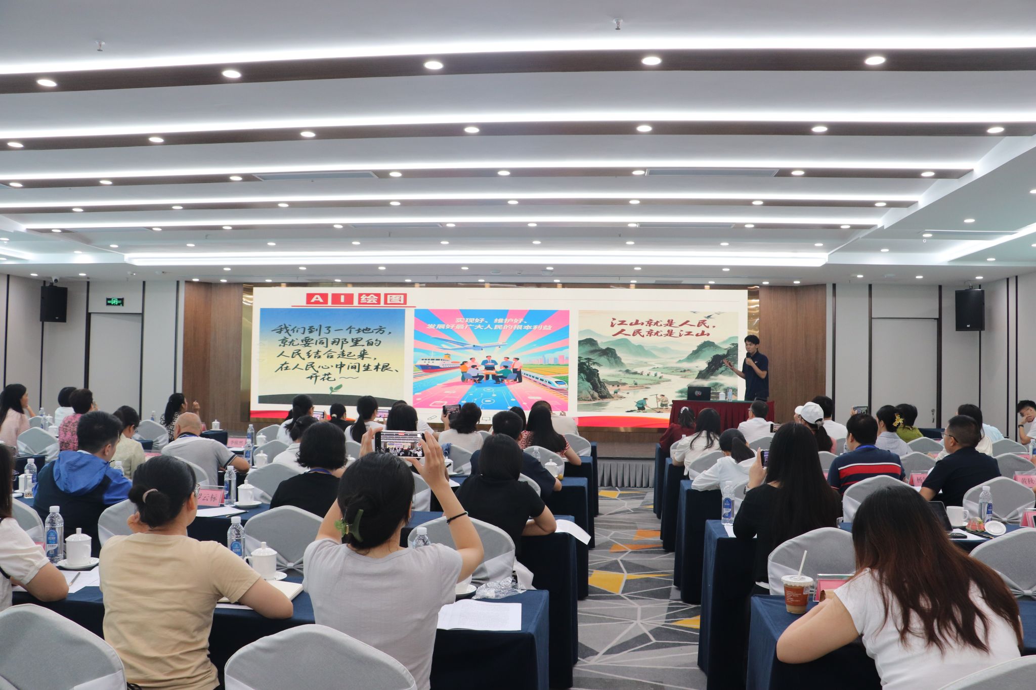 李林在致辞中简要介绍了学校近年信息化、数字化建设以及推进“人工智能+”教师发展计划的情况,并向与会代表提出三点希望:一是凝心聚力,高质量办好新时代思政课;二是深化认识,主动拥抱智能时代教育变革;三是珍惜机会,力争学有所获、学以致用。