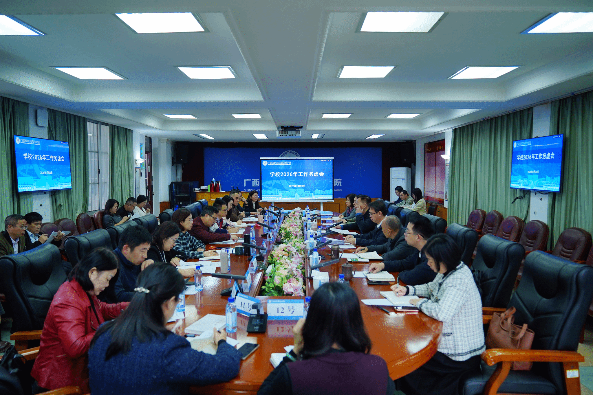 [本网讯]1月20日,学校在长堽校区办公楼三楼会议室召开2026年工作务虚会,围绕“双高”建设提质、升本攻坚与“十五五”规划开局等核心任务,深入研判形势、剖析问题、谋划实招。学校党委书记李林出席会议并讲话,校长刘存香主持会议,全体校领导出席会议。会议深入分...